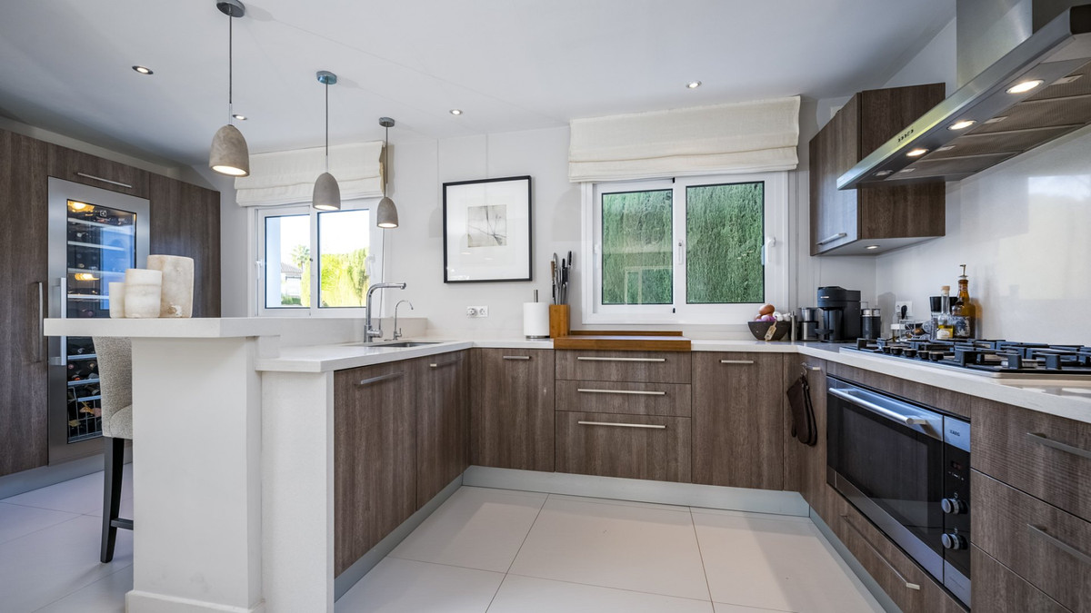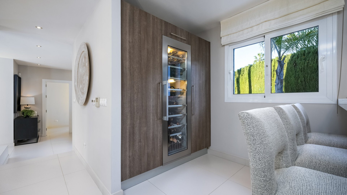 This elegant 4 bedroom private villa is located in the gated urbanisation of Marbella Country Club in Nueva Andalucia. It offers a blend of traditional Andalusian and modern style due to renovating over the past 10 years. Boasting a 11 meter private pool, fully equipped outdoor kitchen, independent wine cellar, automated toilets, and zoned floor heating and air conditioning, this property ticks all the boxes for a family looking for their new home.