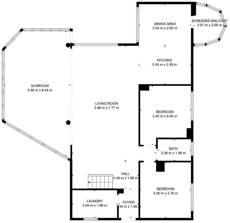 The apartment features a stylish open-plan living and kitchen area that opens onto a generous terrace, thoughtfully designed for both everyday comfort and entertaining. The existing laundry room offers the potential to be converted into a third bathroom, adding further versatility.