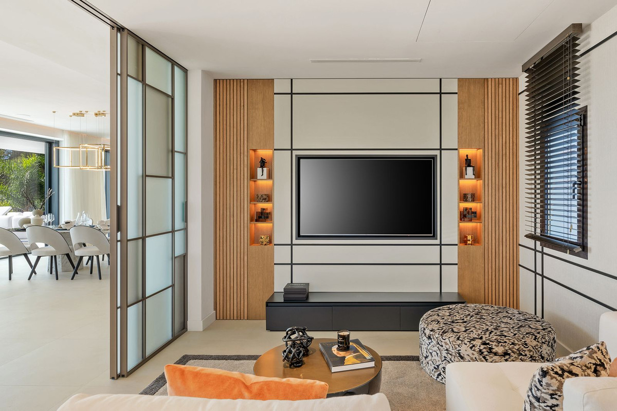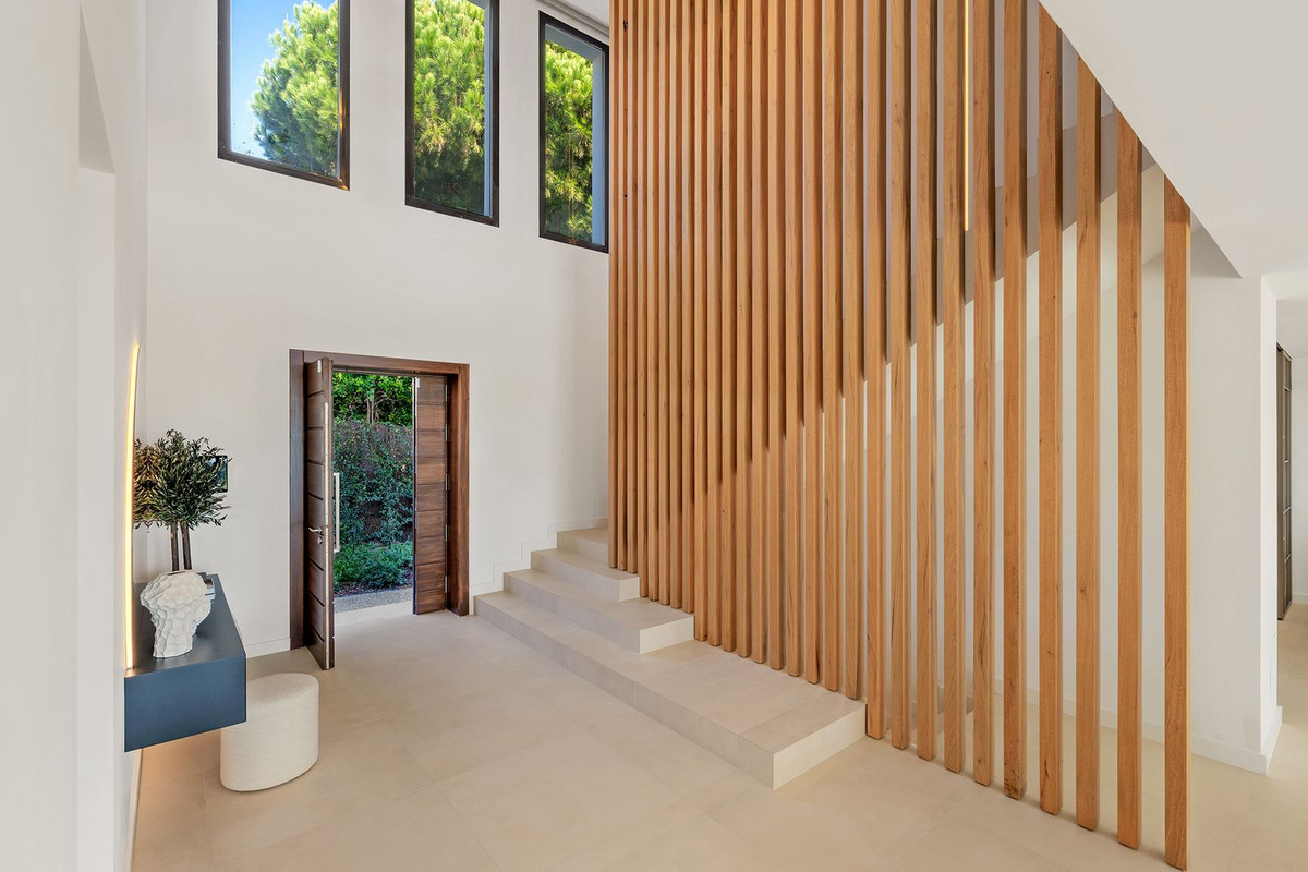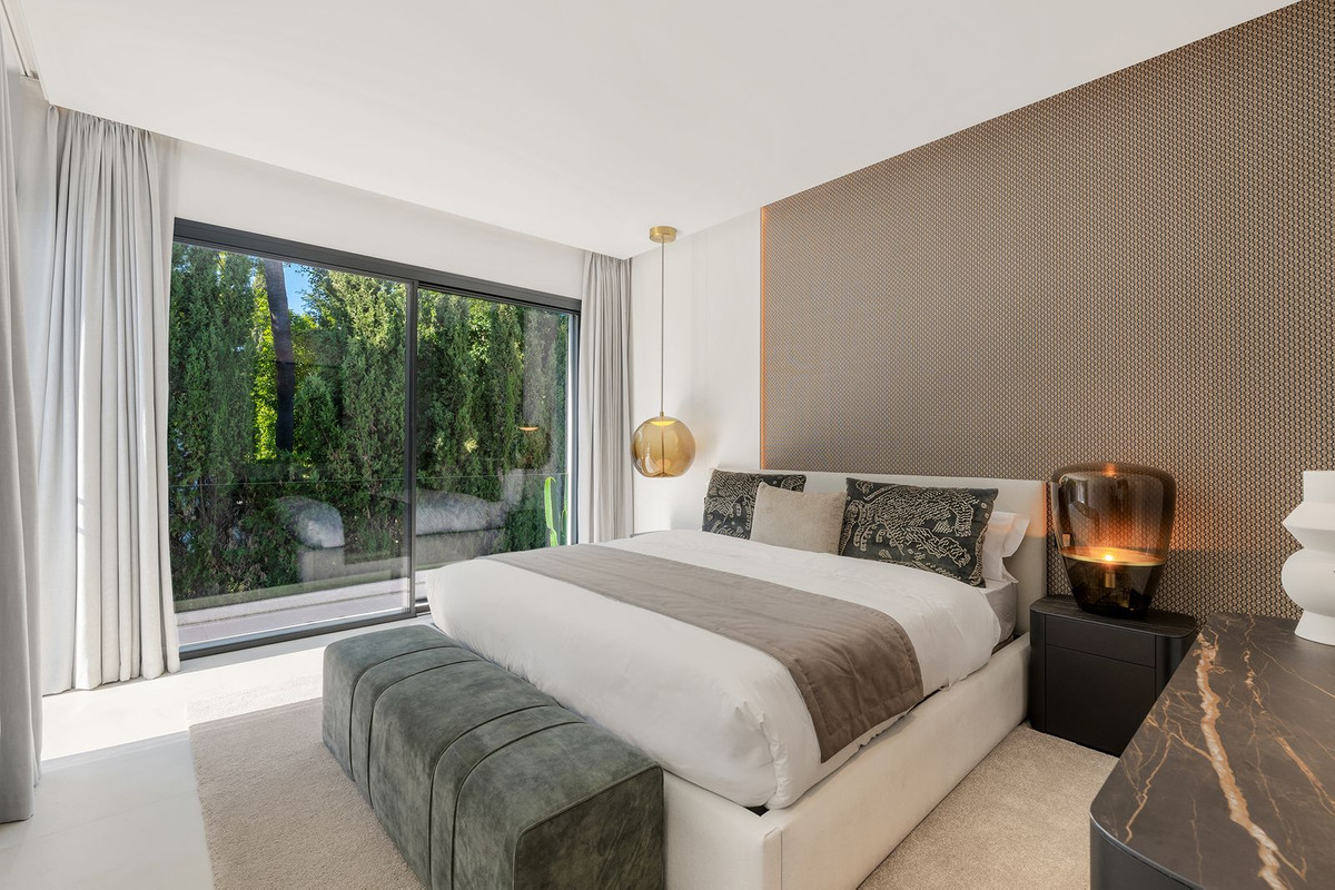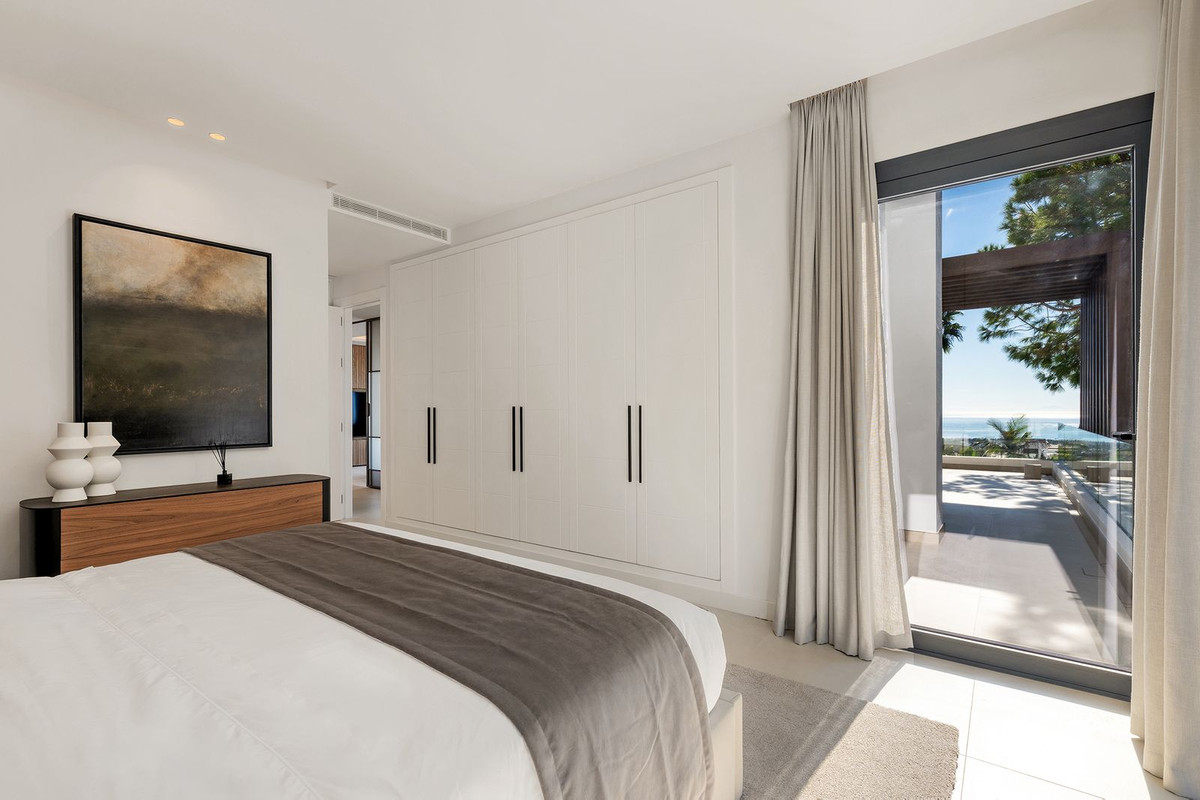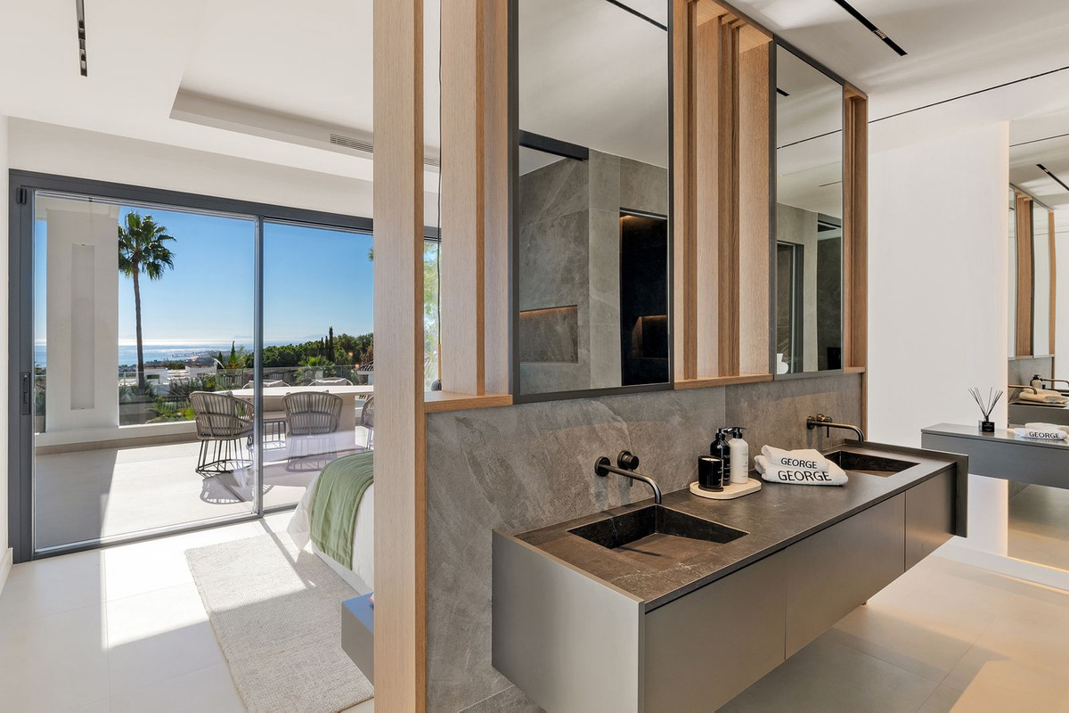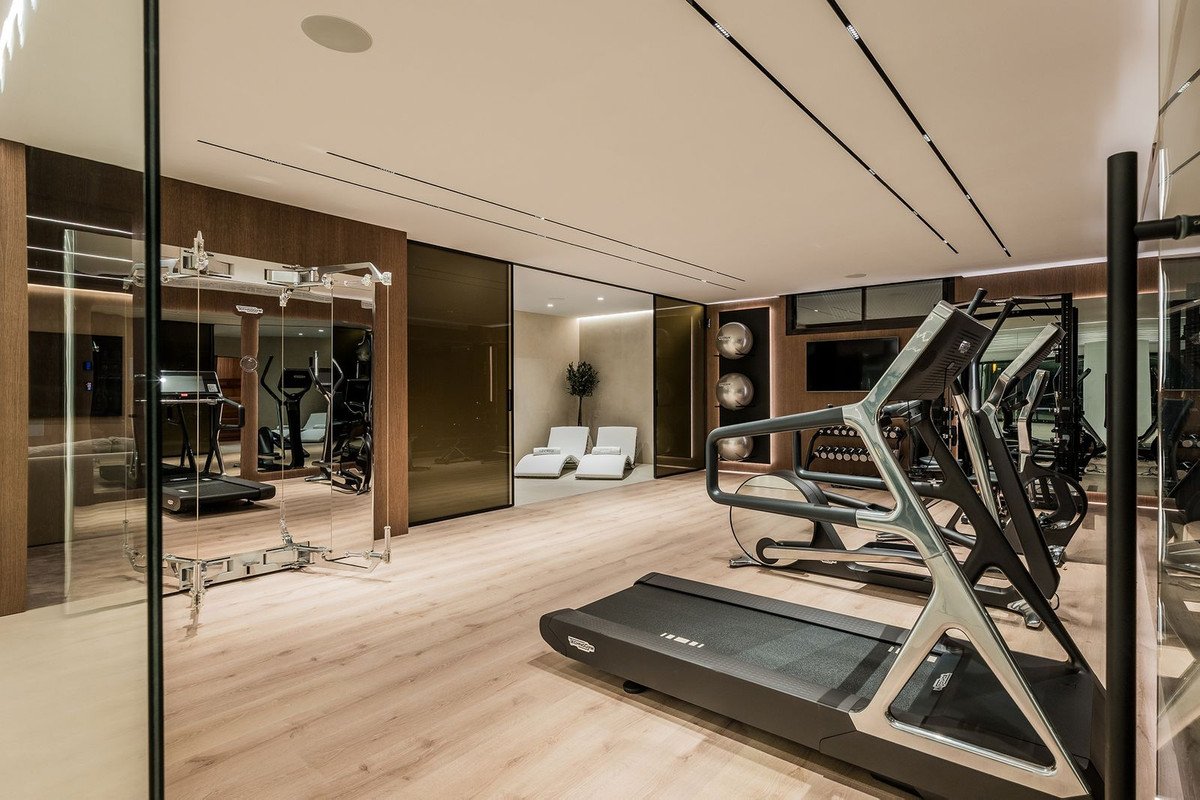 This exquisite villa is situated in a stunning location on the slopes of La Concha mountain within the prestigious private urbanization of Sierra Blanca, located on Marbella's Golden Mile. Here, serenity, a natural environment, and closeness to the city's most renowned landmarks create a tranquil atmosphere, just a few minutes away from Marbella's city center, the historic old town, the Roman Bridge, and Puerto Banús. The villa underwent a complete renovation in 2025. The furniture is available for purchase separately at a price of €350,000 plus VAT. Notable features include aerothermal heating, an automatic irrigation system, glass doors, built-in wardrobes, a laundry area, an open-plan fully equipped kitchen/living room, 24-hour security, a wine cellar, air conditioning, a barbecue, double glazing, a guest toilet, marble flooring, a sauna, a gym, underfloor heating, an alarm system, a basement, furnishings, security cameras, a cinema room, a fireplace, a private community, a jacuzzi, a Turkish bath, a dressing room, porcelain tile flooring, and more.