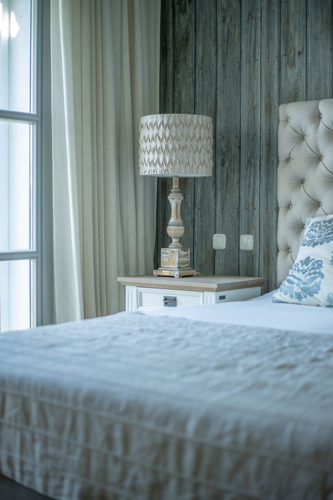On accède à l'intérieur par un hall d'entrée spacieux et lumineux. De là, on trouve, sur la gauche, une chambre avec un lit double et sa salle de bains privative équipée d'une douche et d'une baignoire. La chambre se caractérise par ses baies vitrées qui laissent entrer abondamment la lumière naturelle, ainsi que par un bureau et une télévision.