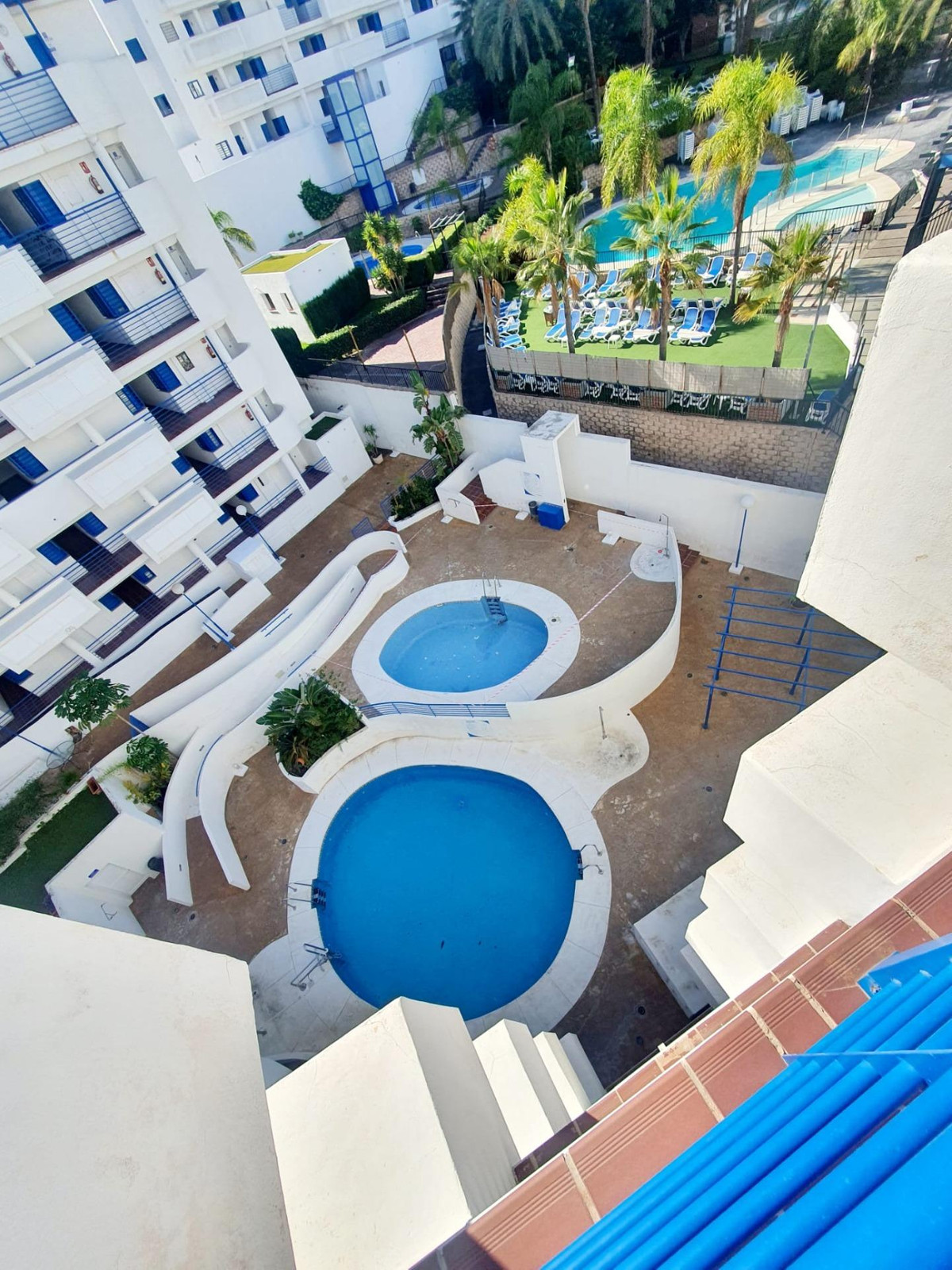 Appartement à vendre à deux pas de la promenade du front de mer de Benalmádena. Bénéficiant d'un emplacement exceptionnel, cet appartement au dernier étage d'une résidence sécurisée offre une piscine, un cellier et un parking souterrain. Il comprend un hall d'entrée, un séjour/cuisine donnant sur une agréable terrasse avec vue sur la mer, et une chambre avec placard intégré. À l'étage, vous trouverez une terrasse de 45 m² avec barbecue, idéale pour profiter des douces soirées d'été. L'appartement est climatisé et sa cuisine est entièrement meublée et équipée.