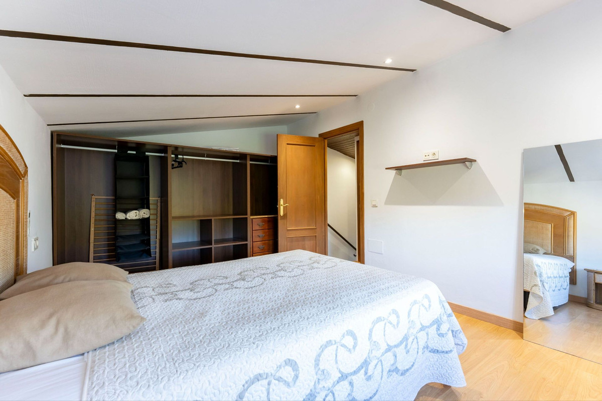 La maison est répartie sur deux étages et comprend une cuisine ouverte sur le séjour, trois chambres (dont deux au premier étage avec plafonds voûtés), deux salles de bains et un petit garage. La chambre principale et le séjour sont climatisés.