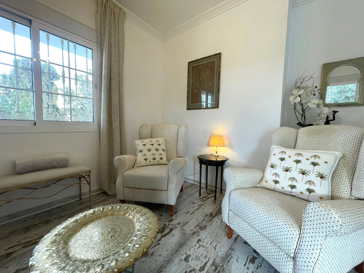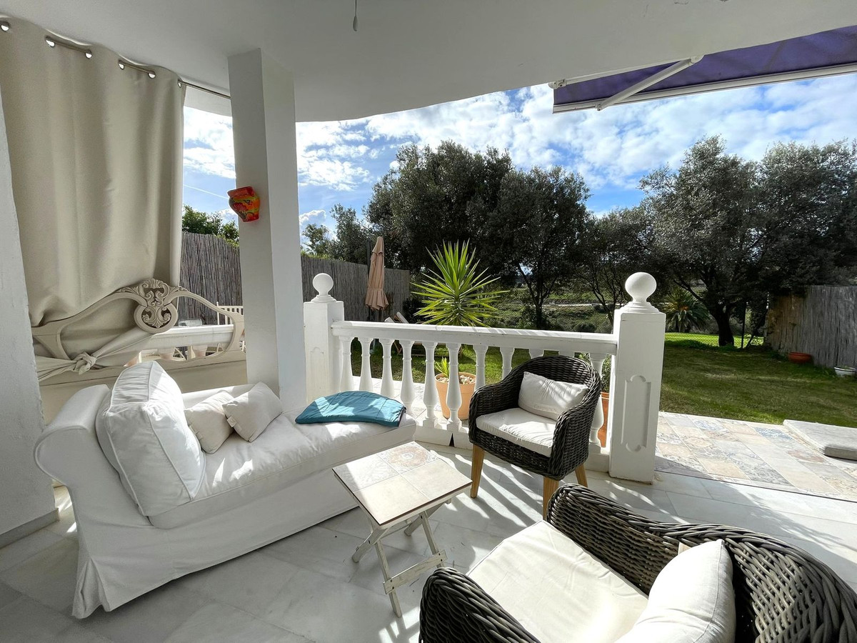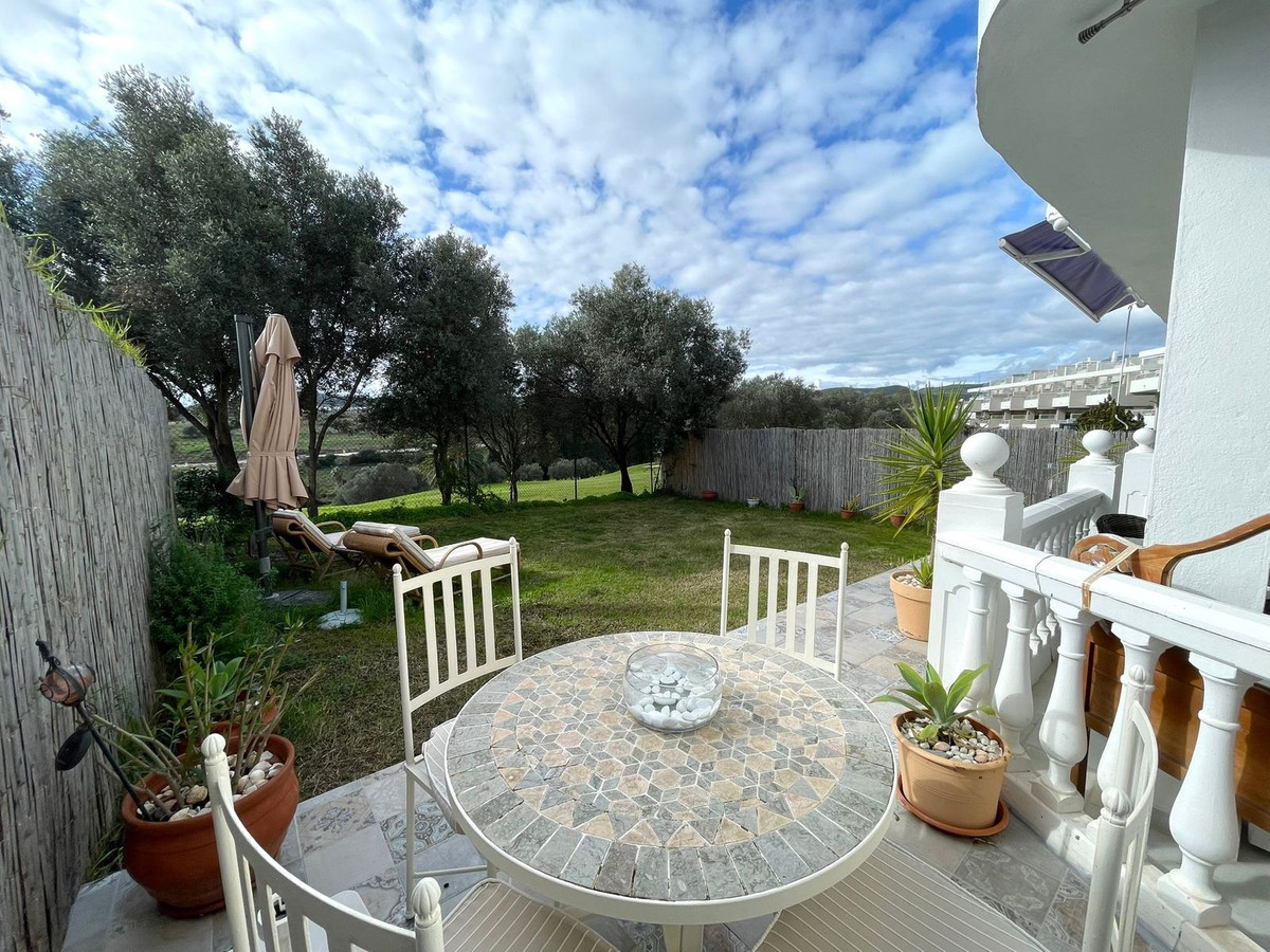 Nous sommes heureux de vous présenter cet élégant appartement de plain-pied qui allie intérieurs spacieux, design moderne et espaces extérieurs privés, situé dans un quartier résidentiel calme d'Estepona, à proximité du terrain de golf.