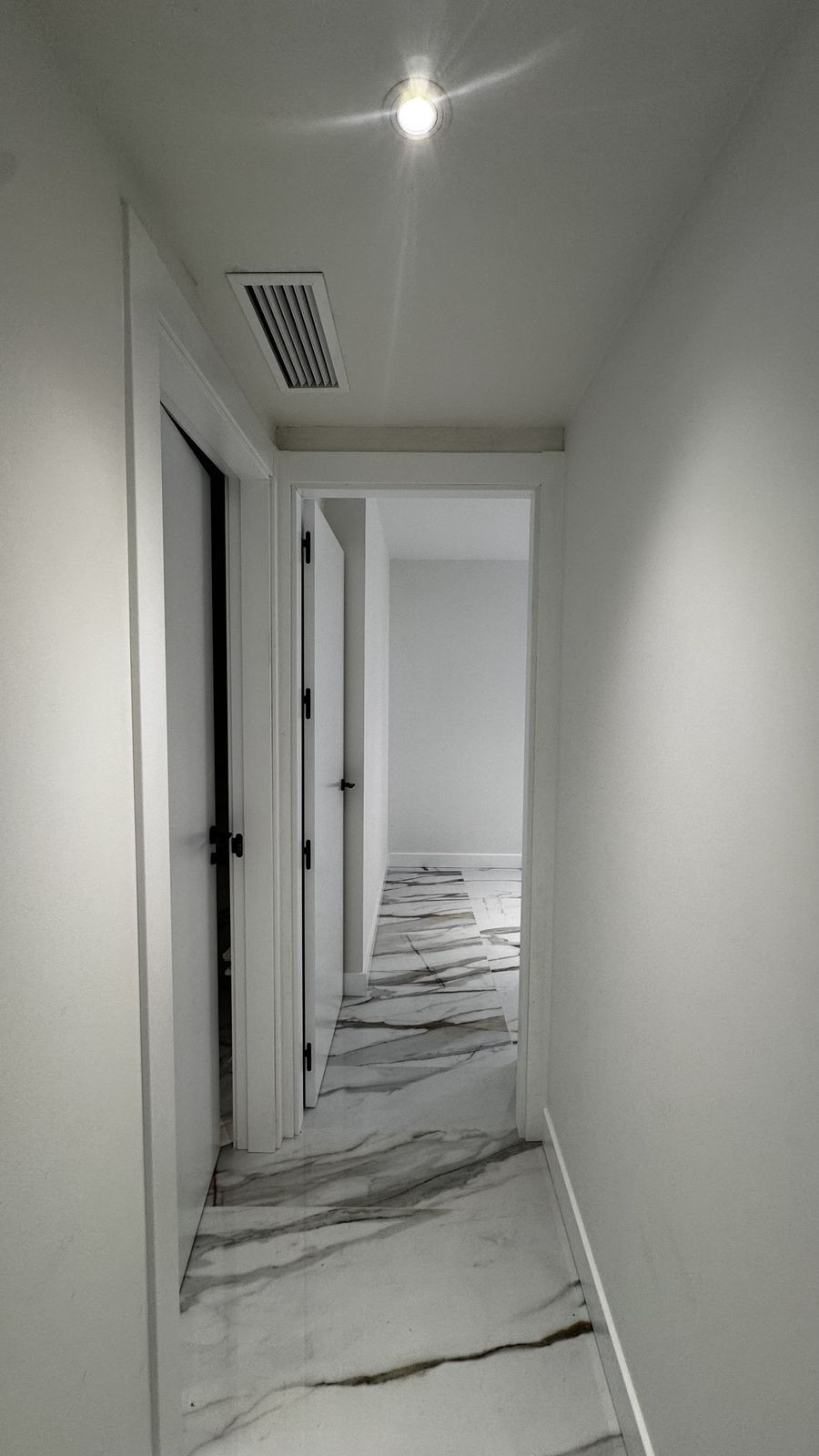 Éclairage LED intégré et points lumineux stratégiques dans les couloirs et les pièces principales.