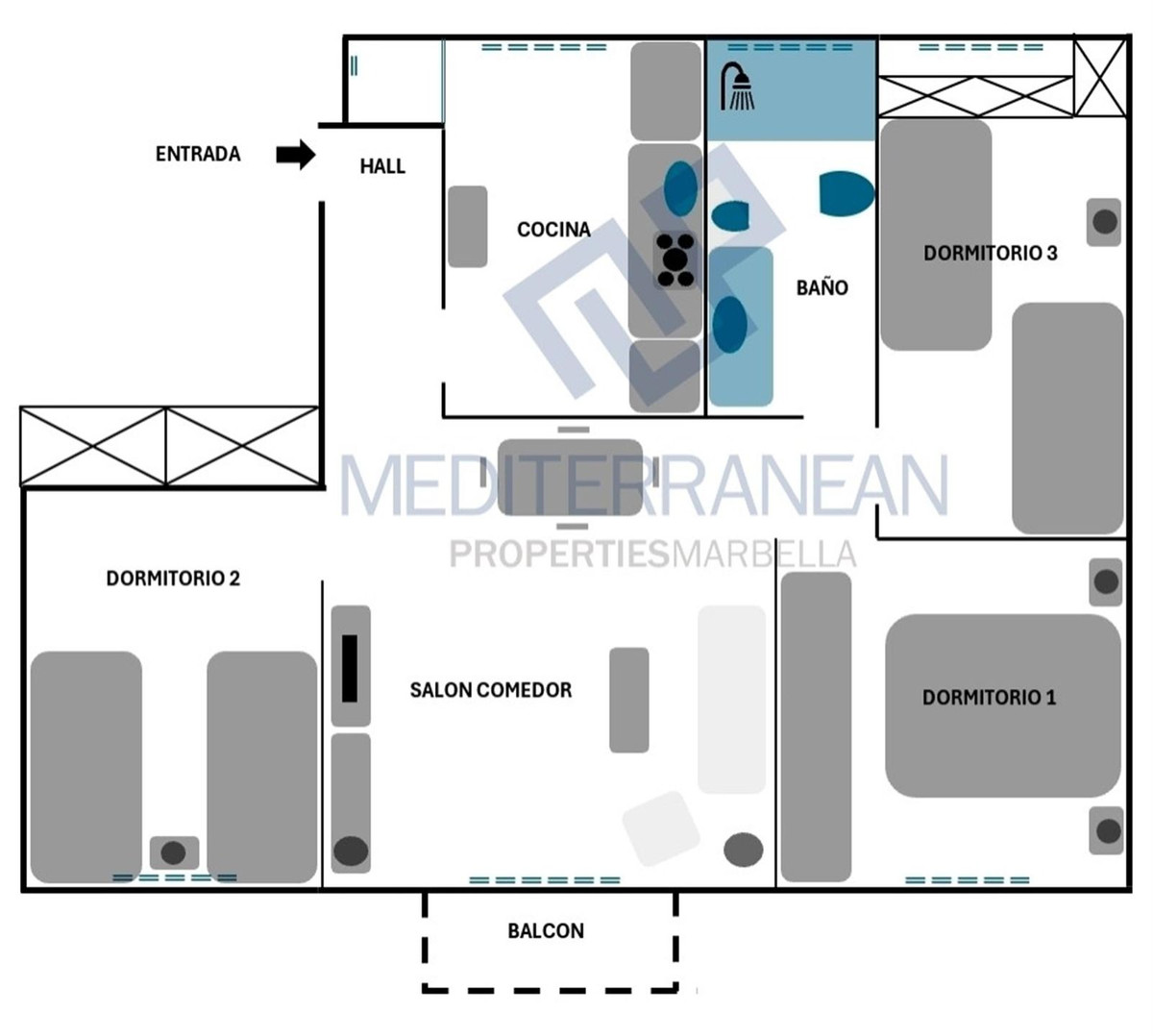 Découvrez ce charmant appartement de 3 chambres et 1 salle de bains, situé dans un quartier de style andalou, dans une zone calme avec des places, des jardins, des fontaines et des rues pavées, à proximité de la vieille ville et du centre-ville de Marbella.