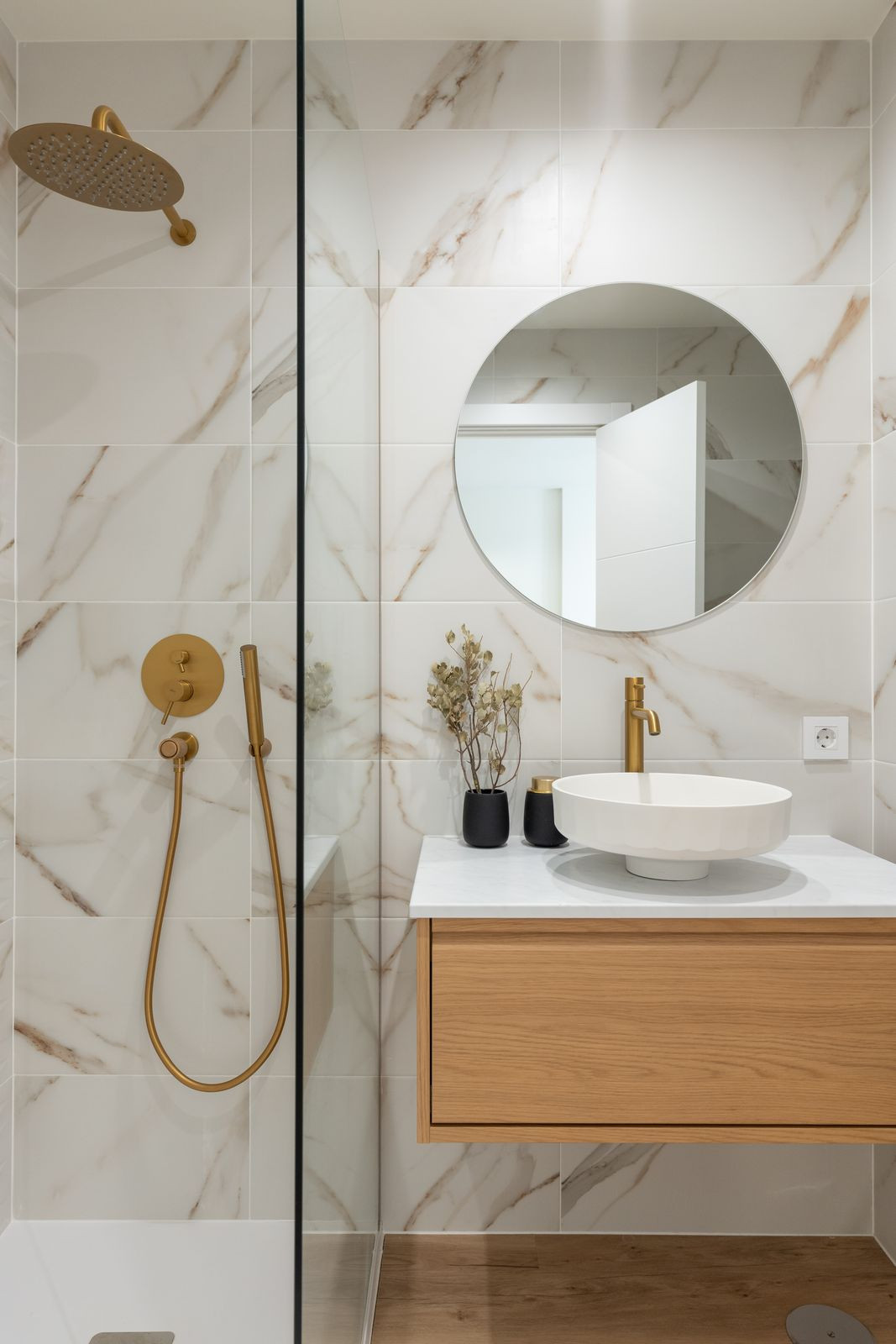 En entrant, vous découvrirez un espace de vie lumineux et ouvert où style et fonctionnalité se conjuguent harmonieusement. La cuisine est équipée d'élégants plans de travail en marbre Calacatta naturel et d'accessoires contemporains, s'accordant parfaitement avec la salle de douche raffinée et les finitions haut de gamme présentes dans toute la maison. La climatisation dans le séjour et la chambre principale garantit un confort optimal toute l'année, tandis qu'un ventilateur de plafond dans la seconde chambre assure une ventilation naturelle douce.