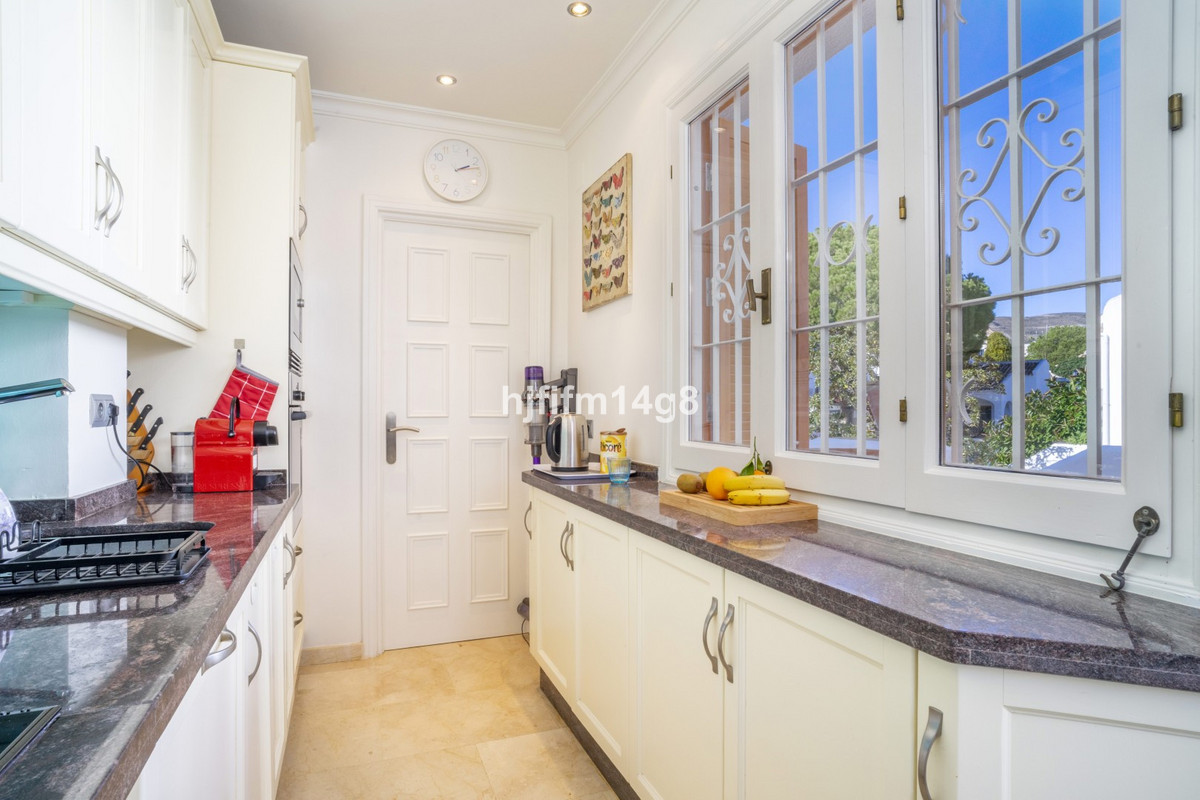En entrant dans le penthouse, un patio privé vous accueille et instaure une ambiance chaleureuse et paisible avant même de pénétrer à l'intérieur. Ce dernier se compose d'un espace de vie et salle à manger décloisonné qui s'ouvre naturellement sur une terrasse ensoleillée. De là, vous pourrez admirer de superbes vues sur l'emblématique montagne de La Concha, les jardins communs luxuriants, la piscine et les fairways du golf d'Aloha, créant ainsi un cadre idéal pour se détendre ou recevoir.