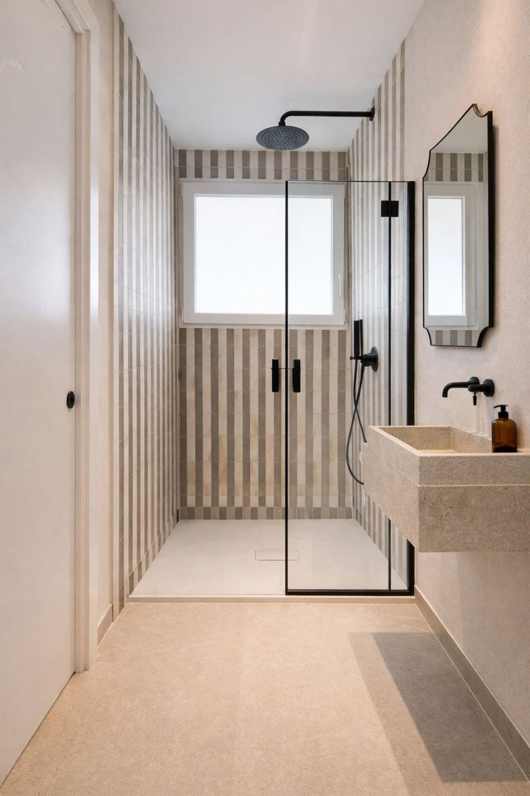 Elle comprend deux chambres et deux salles de bains, dont une attenante, avec un dressing et un accès direct à la terrasse depuis la chambre principale – un véritable luxe pour commencer la journée dans la lumière et la tranquillité. Les fenêtres Cortizo assurent une excellente isolation thermique et acoustique, créant un environnement confortable et paisible en plein cœur de la ville.