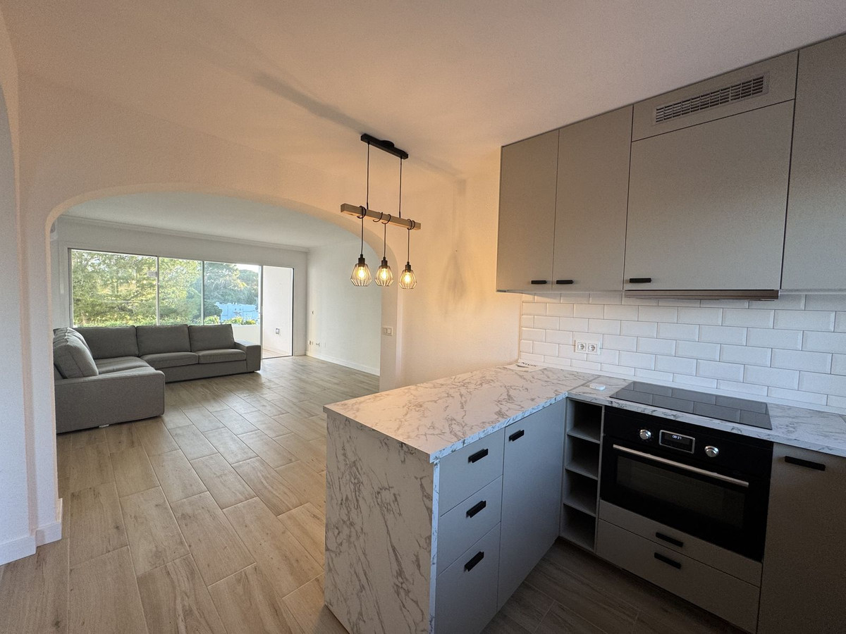 Appartement lumineux de 2 chambres entièrement rénové, offrant une vue magnifique sur la mer, situé dans le complexe renommé Miraflores Rancho B à Mijas Costa.