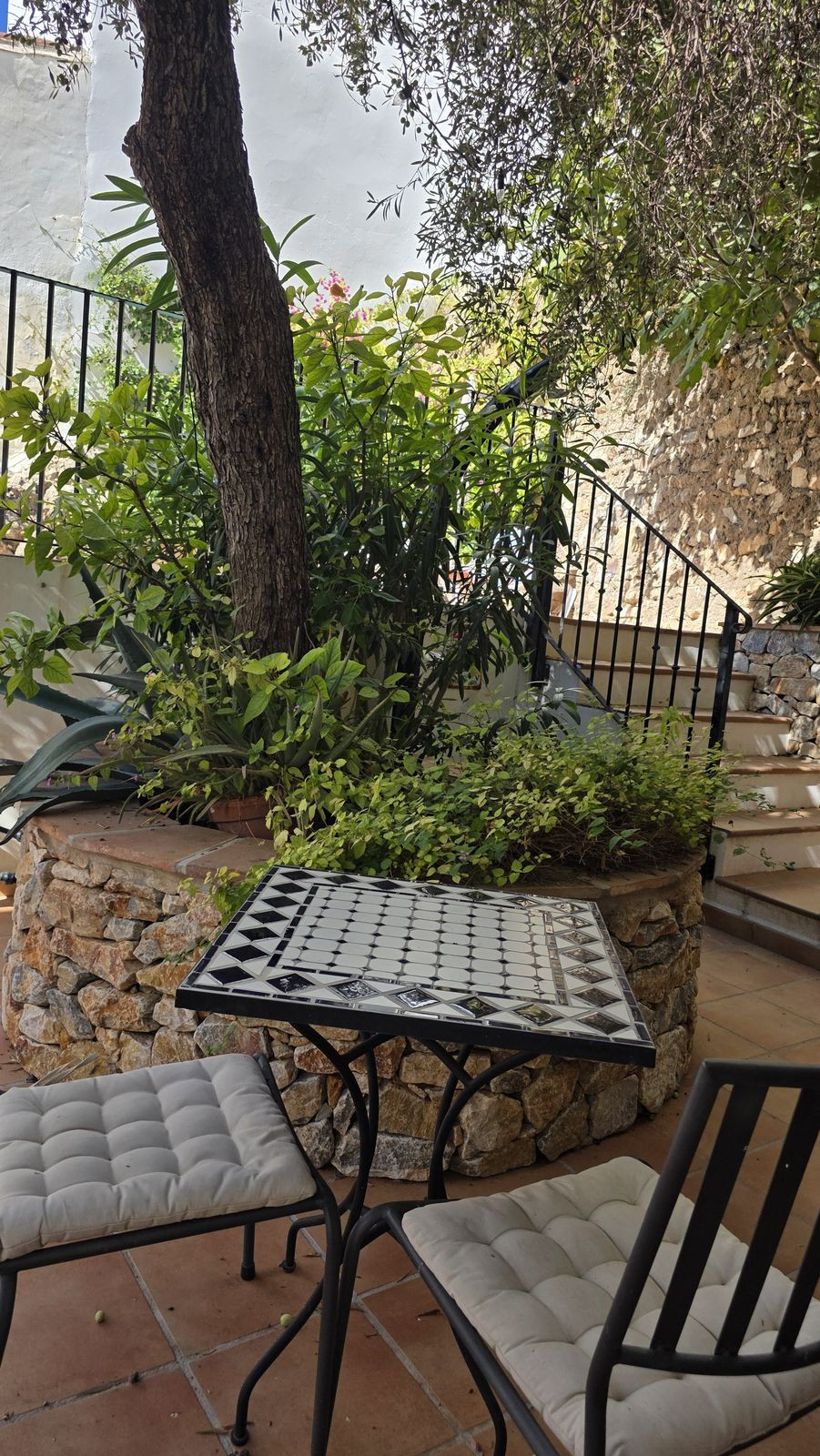 À l'extérieur, chaque recoin a été pensé pour le plaisir. Un charmant patio andalou invite à prendre le petit-déjeuner au soleil ou à se détendre à l'ombre dans un cadre intime et serein.