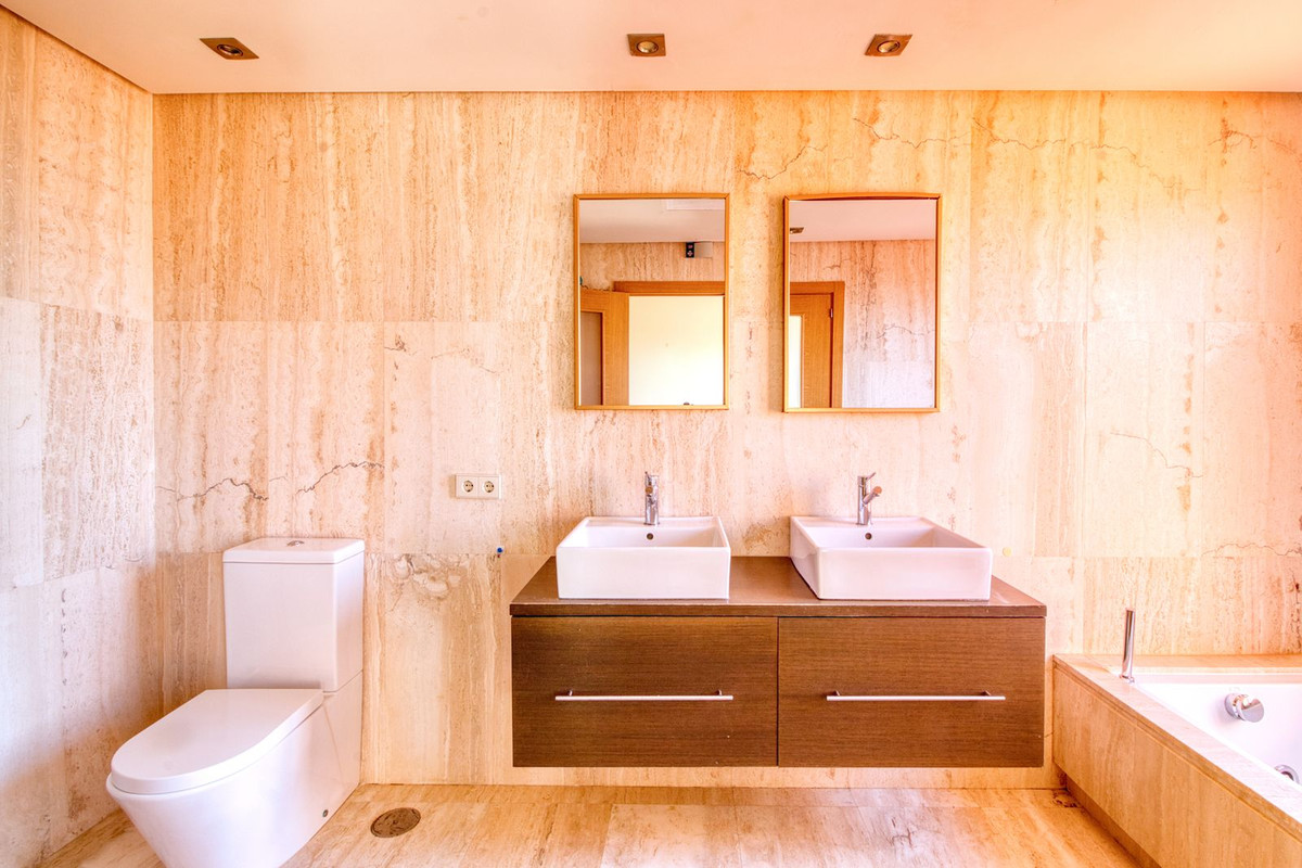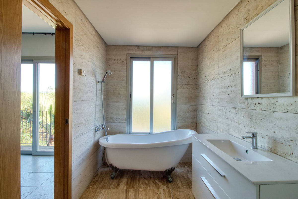 Cette spacieuse maison offre un parfait équilibre entre confort et élégance, avec une vue imprenable sur Gibraltar et la côte africaine. Répartie sur trois niveaux, la propriété propose de généreux espaces de vie et un agencement bien pensé, idéal pour se détendre comme pour recevoir. Au rez-de-chaussée, vous trouverez un salon-salle à manger accueillant, une cuisine entièrement équipée et des toilettes invités. Une vaste terrasse prolonge le salon, parfaite pour profiter de la brise méditerranéenne. Le premier étage comprend deux grandes chambres, chacune avec sa propre salle de bains et son balcon privé. Le sous-sol offre une troisième chambre, un espace polyvalent supplémentaire pouvant servir de salle de cinéma, de salle de jeux ou de bureau, ainsi qu'une salle de bains. La propriété est couronnée par une impressionnante terrasse sur le toit de 60 m², où vous pourrez vous prélasser au soleil et admirer une vue panoramique sur la mer et les montagnes dans les deux directions : Marbella, Sotogrande et la côte africaine. Une place de parking privée juste devant la maison vous garantit un confort optimal.