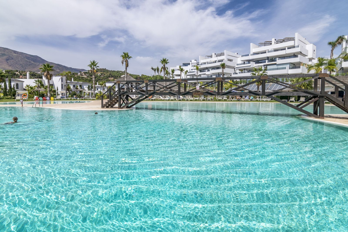 Cette propriété comprend deux chambres et deux salles de bains, agencées dans un espace lumineux et aéré où chaque détail a été soigneusement pensé pour un confort optimal. Le séjour, avec ses baies vitrées, s'ouvre sur une terrasse privative exposée ouest offrant une vue panoramique imprenable sur la chaîne de montagnes d'Estepona et de magnifiques couchers de soleil sur la Costa del Sol.