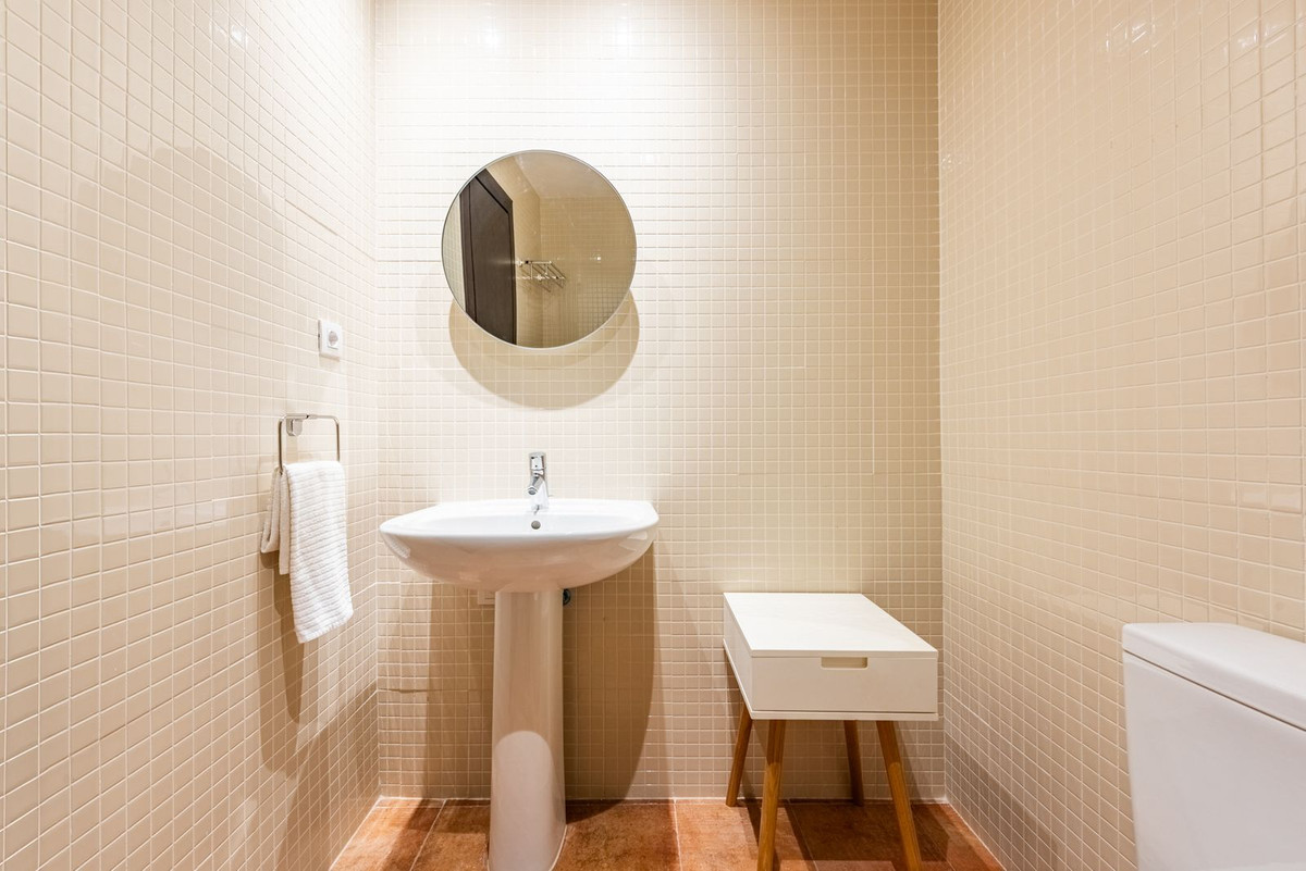 En descendant depuis le niveau d'entrée, vous trouverez une salle de bain complète qui sert à la fois de salle de bain pour les invités et de salle de bain pour la quatrième chambre, située dans une partie plus privée de la maison, idéale pour les invités recherchant plus d'indépendance.