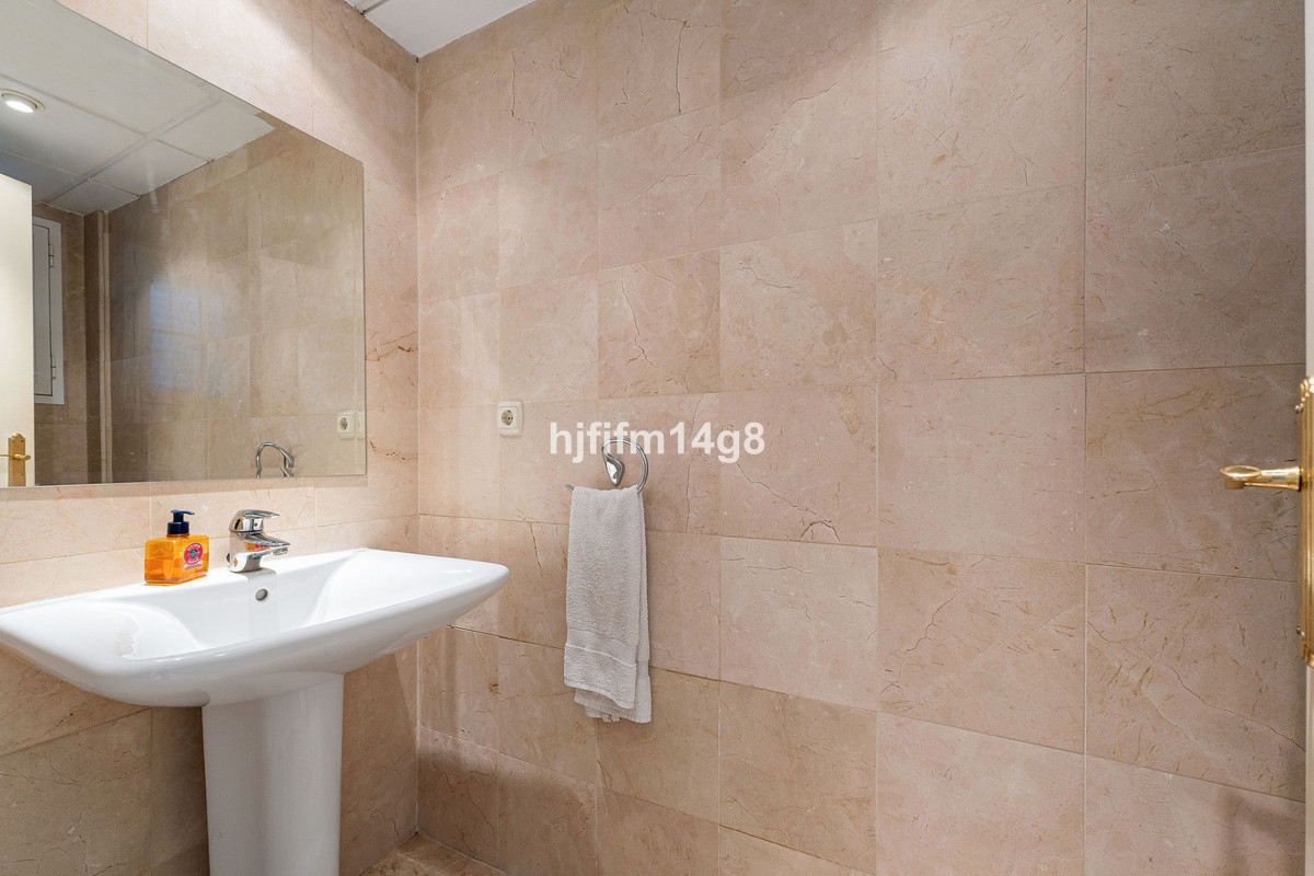 Cette maison de ville est répartie sur plusieurs niveaux et offre de généreux espaces intérieurs et extérieurs. Au rez-de-chaussée, vous découvrirez un séjour/salle à manger lumineux et accueillant, agrémenté d'une cheminée et donnant directement sur une terrasse exposée plein sud, idéale pour profiter du soleil de Marbella tout au long de l'année. La cuisine entièrement équipée est fonctionnelle et bien agencée. Un hall d'entrée, un cellier et des toilettes invités complètent ce niveau.