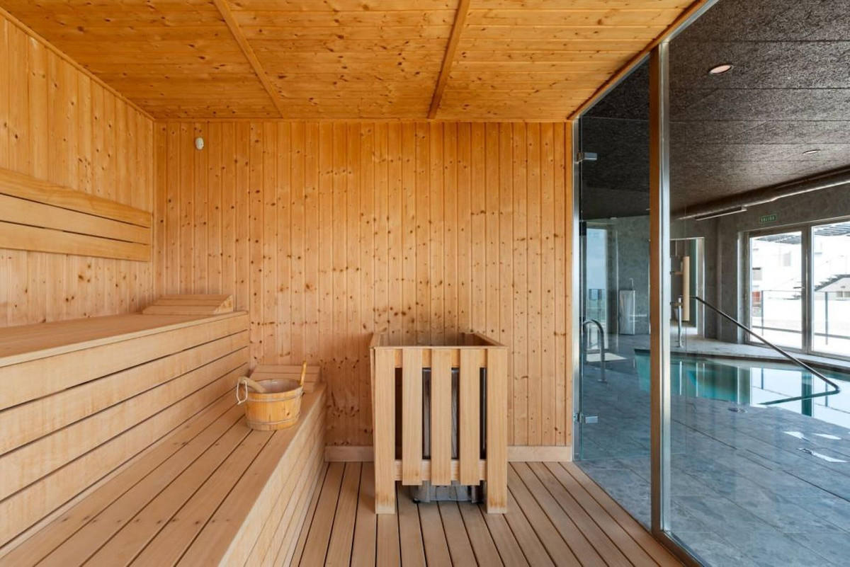 | Voorzieningen: Overdekt terras, Inbouwkasten, Privéterras, Solarium, Fitnessruimte, Sauna | |