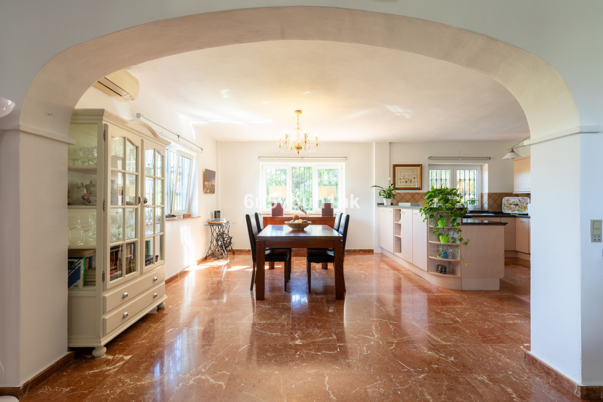Cette superbe villa individuelle, située dans l'urbanisation Pinos de Alhaurín, offre un cadre naturel paisible où vous pourrez respirer un air pur et profiter d'une intimité totale. Elle est idéale aussi bien comme résidence familiale que comme investissement rentable. La villa comprend deux logements totalement indépendants, parfaits pour un séjour en famille ou pour louer l'un d'eux aux touristes. D'ailleurs, le rez-de-chaussée est loué avec succès depuis des années comme location de vacances, générant d'excellents rendements. Avec son design moderne, son état impeccable et un ascenseur reliant les deux étages, cette maison est une option confortable, pratique et prête à emménager. Rez-de-chaussée (Logement A) En entrant, vous découvrirez un salon-salle à manger spacieux et lumineux avec accès direct à la véranda et à la piscine, une cuisine indépendante entièrement équipée, un débarras, une chambre principale avec salle de bains attenante et grand dressing, deux chambres doubles et une salle de bains complète. La grande véranda couverte est idéale pour passer du temps en famille ou entre amis, et de là, vous pouvez accéder directement à la piscine. Étage supérieur (Maison B) Vous pouvez accéder facilement à l'étage supérieur par ascenseur ou par le grand escalier. À votre arrivée, vous serez accueilli par une charmante véranda offrant une vue imprenable sur les montagnes. Cette maison comprend un séjour/salle à manger ouvert avec une cuisine entièrement équipée, une suite parentale avec salle de bains privative, une autre chambre double, une salle de bains complète, des toilettes invités et une buanderie. Extérieur L'espace extérieur comprend un jardin magnifiquement aménagé avec éclairage automatique, une piscine moderne avec cascade, un espace barbecue-bar couvert, des toilettes extérieures et un abri de jardin. L'établissement comprend également un parking couvert pouvant accueillir jusqu'à quatre véhicules, des fenêtres de sécurité à double vitrage, la climatisation dans toutes les pièces, deux cheminées et tout le confort dans les moindres détails.
