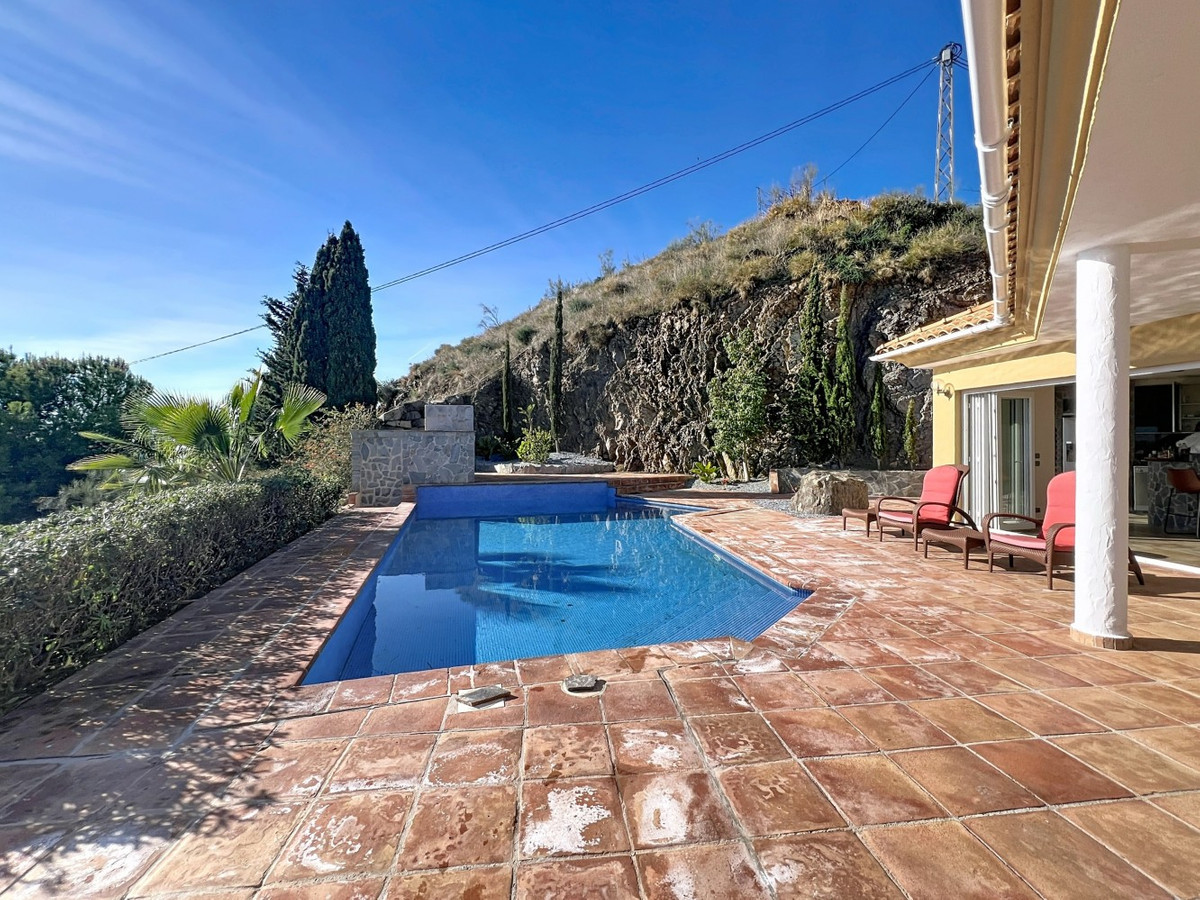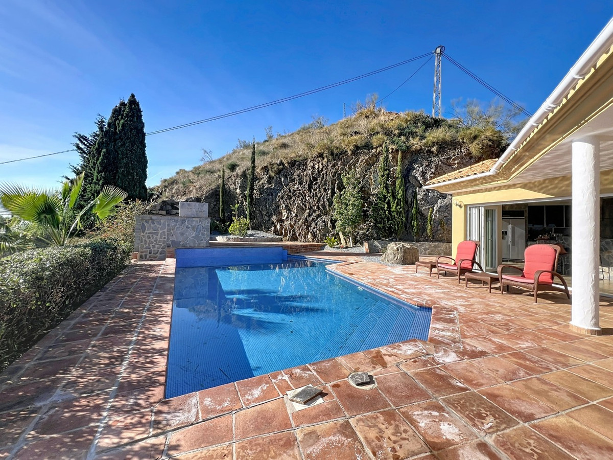 Cette magnifique villa à Algarrobo allie espace, luminosité et confort, offrant un cadre de vie idéal pour profiter du calme et du climat de la Costa del Sol. La maison principale comprend une grande cuisine américaine ouverte sur le séjour-salle à manger, caractérisé par sa luminosité et ses généreux volumes, parfaits pour les réunions de famille ou entre amis. La maison dispose de deux chambres, chacune avec sa propre salle de bains, garantissant confort et intimité. La propriété comprend également un appartement indépendant pour les invités, avec une kitchenette et une salle de bains complète, offrant indépendance et flexibilité à la famille ou aux visiteurs. À l'extérieur, la villa bénéficie d'une piscine privée, d'un espace barbecue, d'une buanderie et d'un garage, ainsi que d'un vaste terrain de 2 500 m², idéal pour profiter du plein air, aménager des espaces de détente ou créer un jardin personnalisé. La propriété offre des vues spectaculaires sur la mer et la montagne, ajoutant une valeur et un charme uniques. Une propriété unique, lumineuse et polyvalente, parfaite comme résidence principale ou secondaire sur la Costa del Sol. Nous sommes ravis de pouvoir vous présenter prochainement cette propriété, en personne ou par visite virtuelle. Parce que ce monde est unique, comme notre Axarquía. En Andalousie. Sur la Costa del Sol. Ici, du bon côté de la vie…