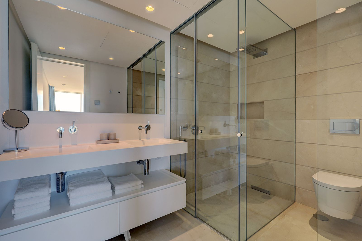 Cet appartement comprend deux chambres magnifiquement aménagées et deux salles de bains luxueuses, toutes deux équipées de douches à l'italienne et de chauffage au sol. La suite parentale, véritable havre de paix, bénéficie d'un accès direct à la vaste terrasse et d'une élégante salle de bains privative. Une deuxième chambre et une salle de bains pour les invités offrent un hébergement tout aussi raffiné pour la famille ou les visiteurs.