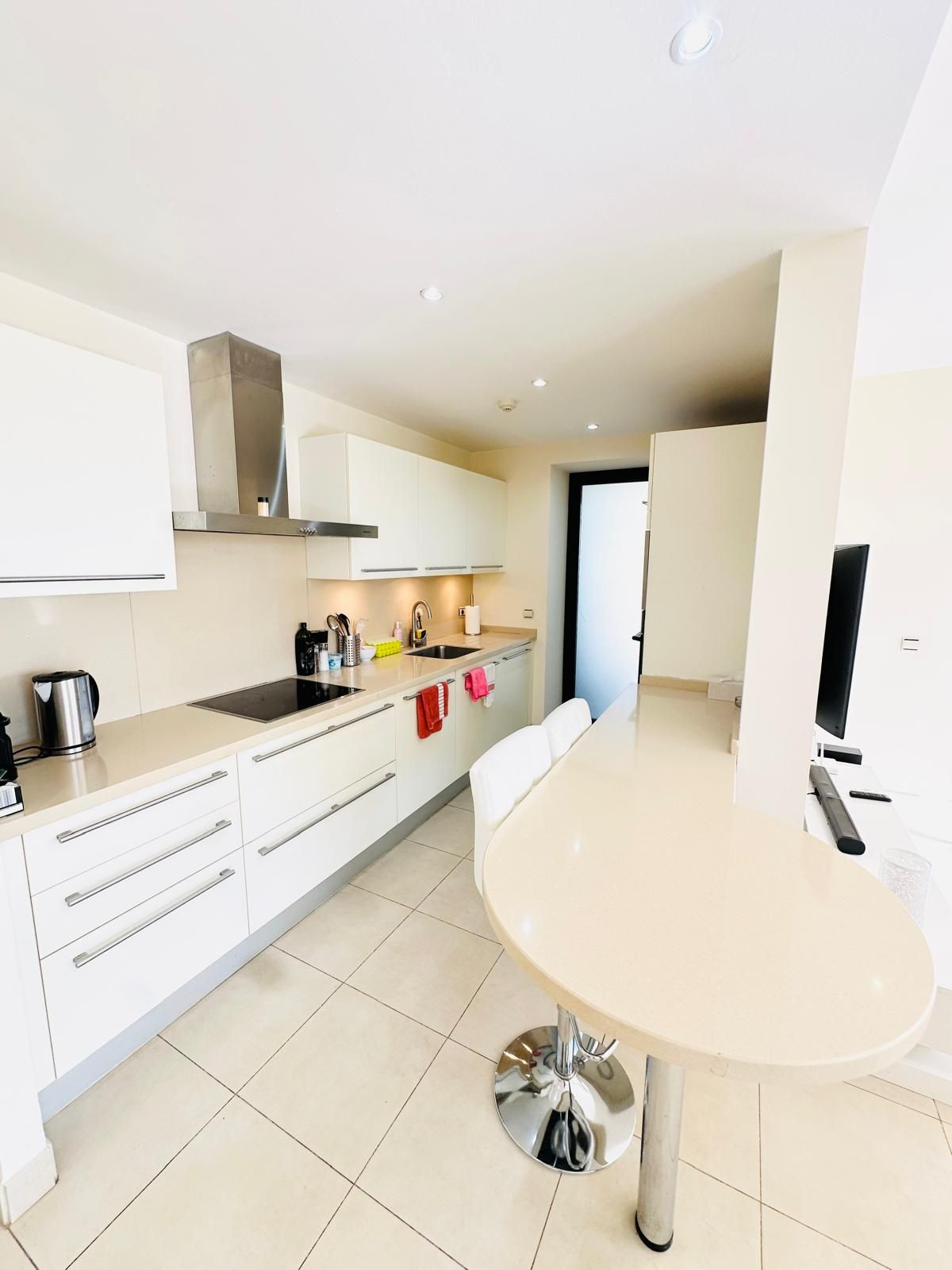 Ce penthouse comprend trois chambres, toutes donnant sur la terrasse, un vaste séjour/salle à manger offrant une vue imprenable et une cuisine ouverte entièrement équipée. Deux des chambres disposent d'une salle de bains privative et un WC séparé est également disponible.