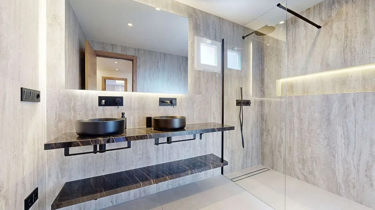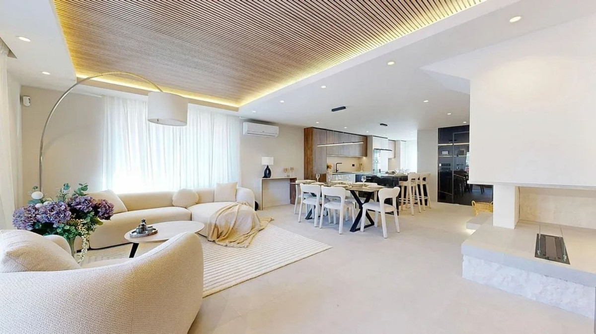 Avec une surface construite de 204 m² sur un terrain privé de 250 m², la maison est répartie sur trois étages et comprend 3 chambres spacieuses, 3 salles de bains et un salon lumineux avec accès direct au jardin et à la piscine commune.