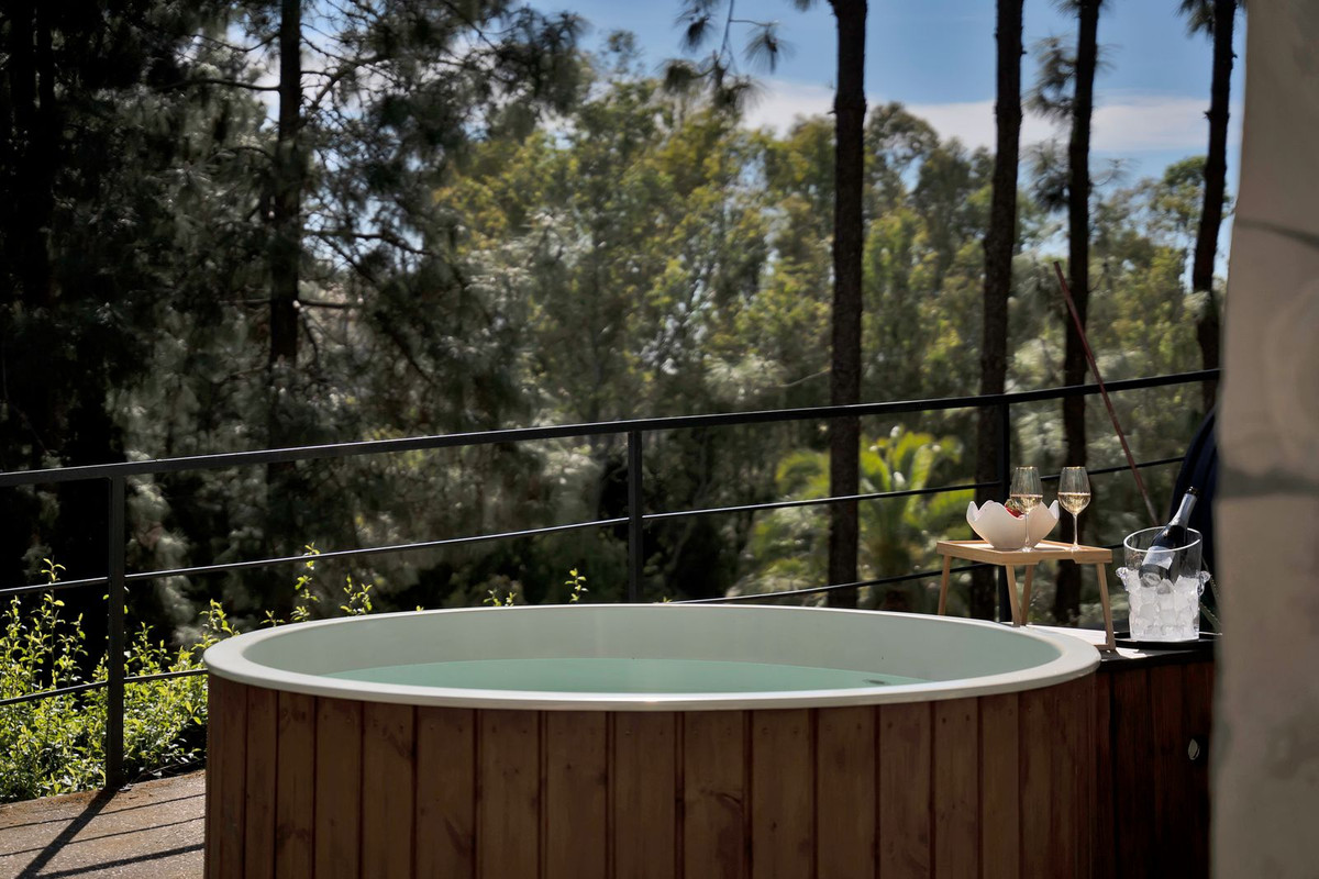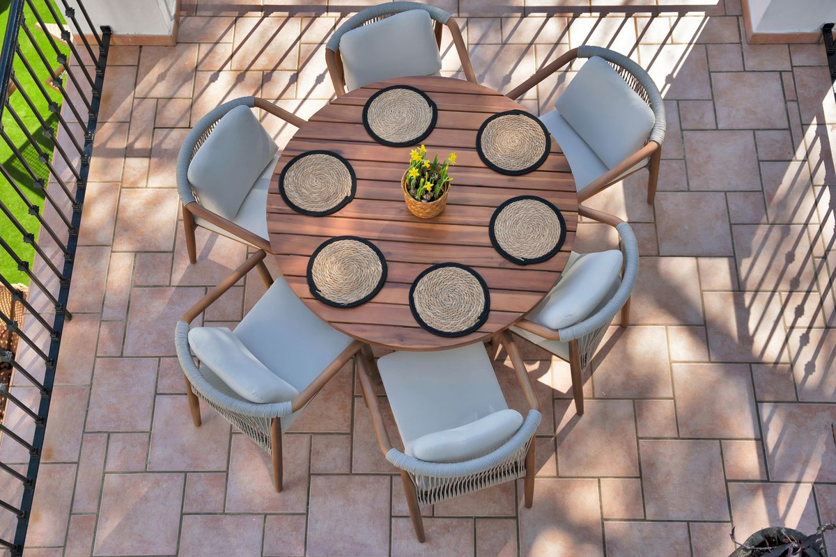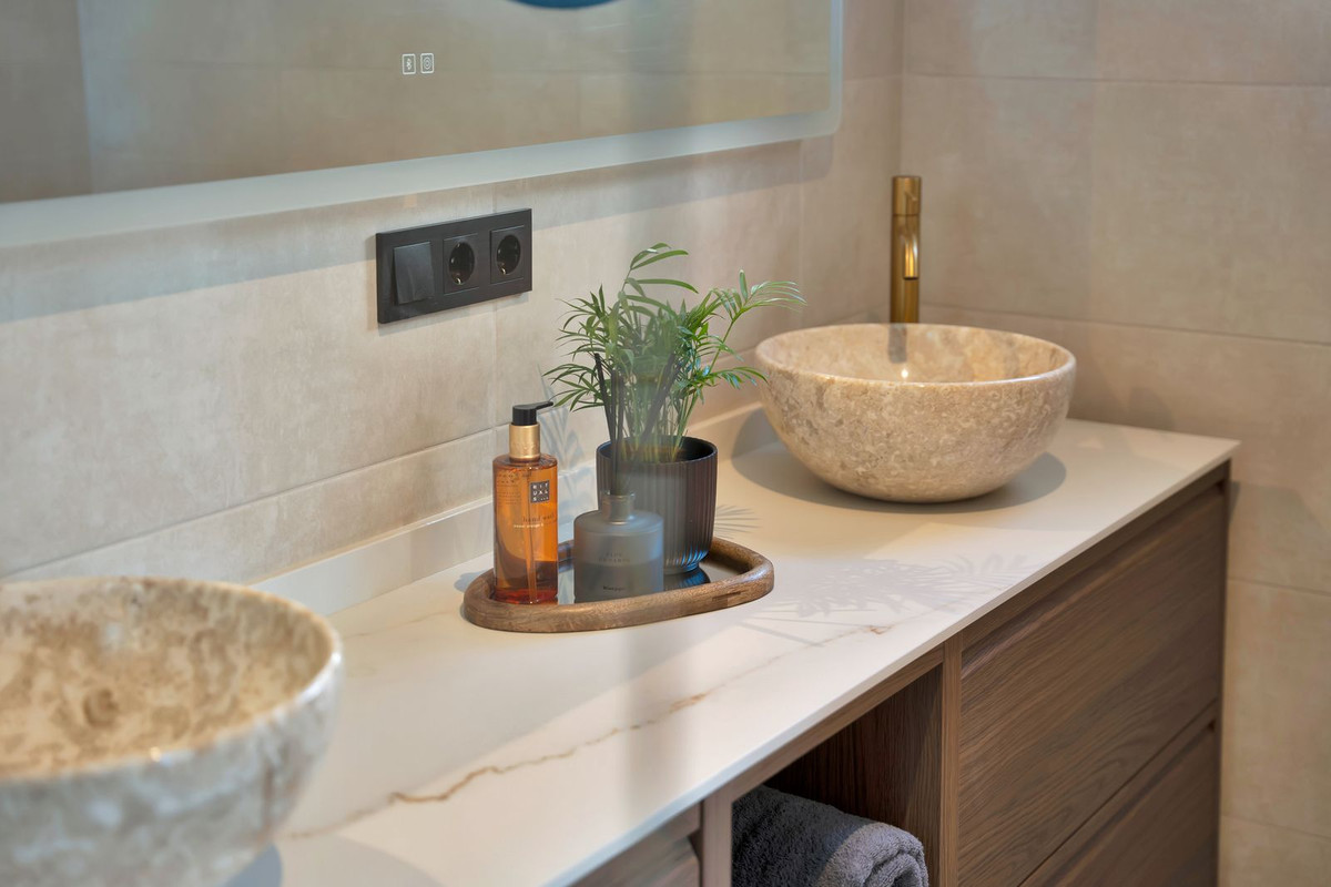 Le niveau inférieur s'ouvre directement sur le jardin privé, où vous trouverez un jacuzzi et des chaises longues — un cadre idéal pour se détendre et profiter du style de vie de la Costa del Sol.