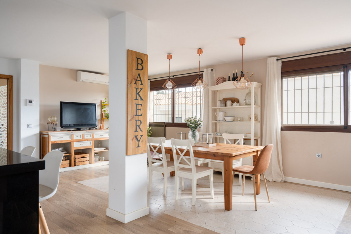 Le confort quotidien est optimisé par de nombreux rangements, la climatisation, des ventilateurs de plafond et des panneaux solaires. À l'extérieur, la maison s'ouvre sur une cour privée carrelée, facile d'entretien et entourée de murs pour préserver l'intimité. Vous y trouverez une piscine, plusieurs terrasses ensoleillées tout au long de la journée et un parking pour deux véhicules.