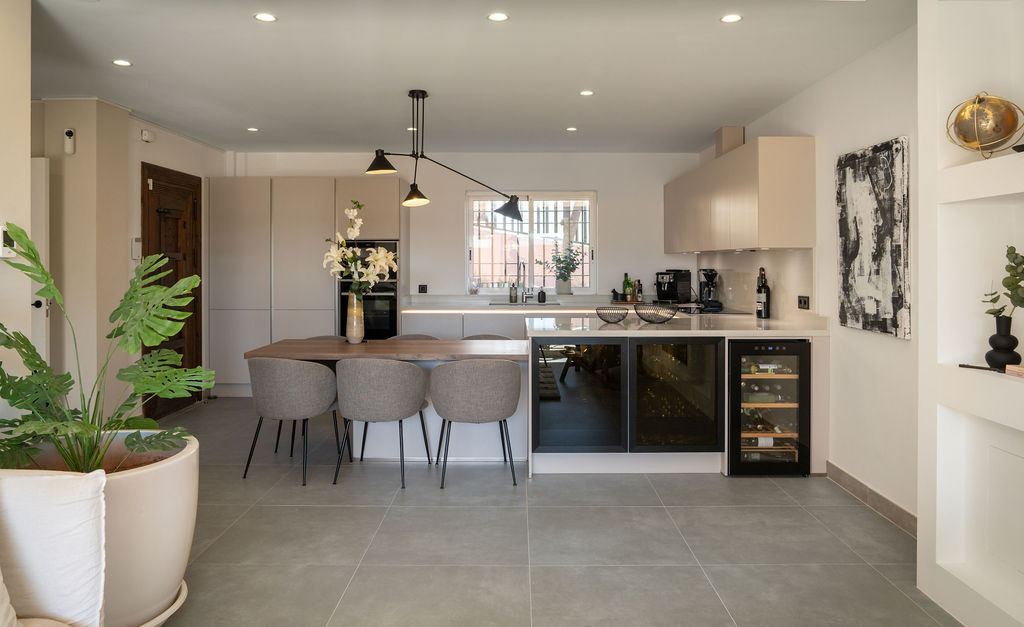 Cette magnifique maison de ville de 4 chambres, entièrement rénovée, est située dans une résidence privée, paisible et sécurisée, au cœur de Nueva Andalucía. Conçue dans un style scandinave raffiné et sobre, elle offre un parfait équilibre entre confort moderne et élégance intemporelle.