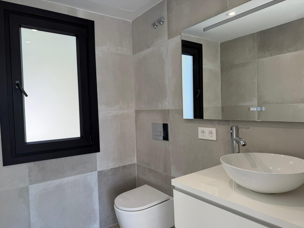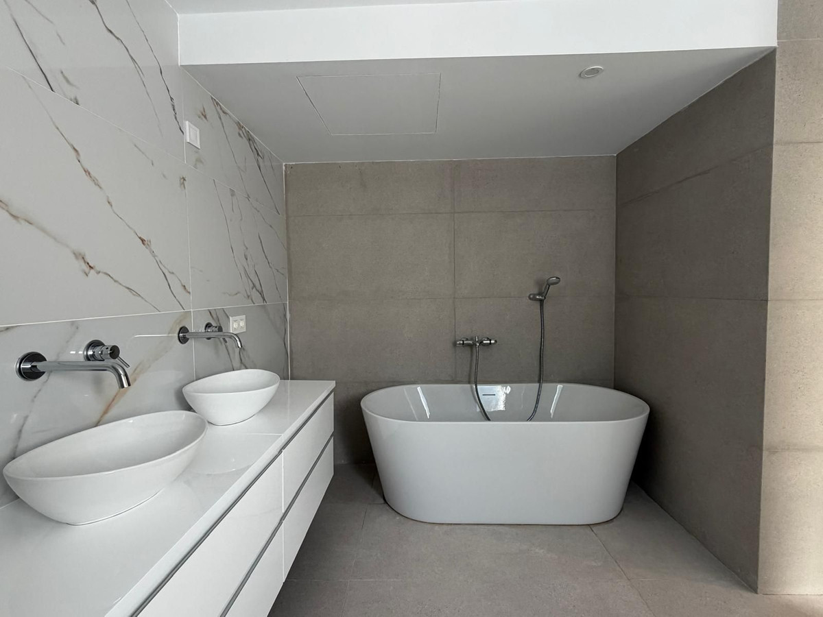 La propriété comprend trois chambres spacieuses, chacune avec sa propre salle de bains, et un total de cinq salles de bains, garantissant confort et intimité à tous. Chaque pièce est équipée d'une climatisation individuelle, assurant une température agréable toute l'année.