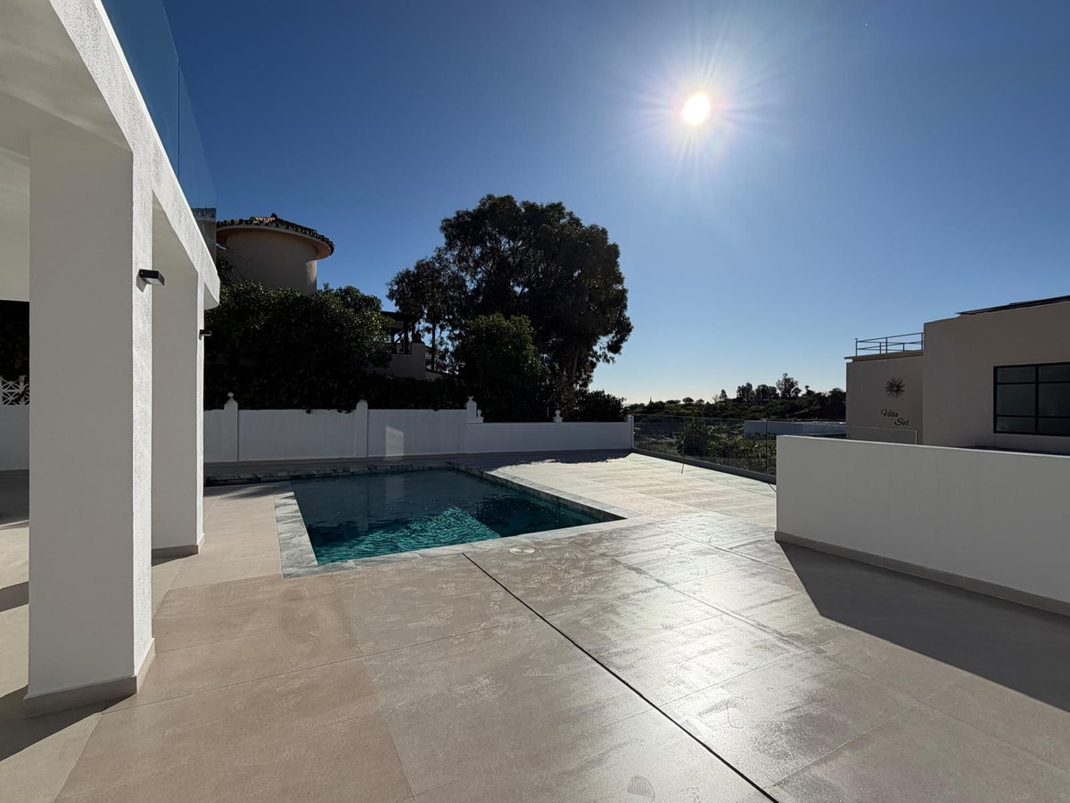 L'espace de vie extérieur est exceptionnel, avec une piscine privée, de multiples patios et terrasses, et de confortables espaces de détente extérieurs – parfaits pour se relaxer, recevoir des amis ou profiter du calme environnant. Admirez la vue dégagée et, par endroits, un aperçu de la mer depuis la villa, qui contribue à son ambiance sereine et exclusive.