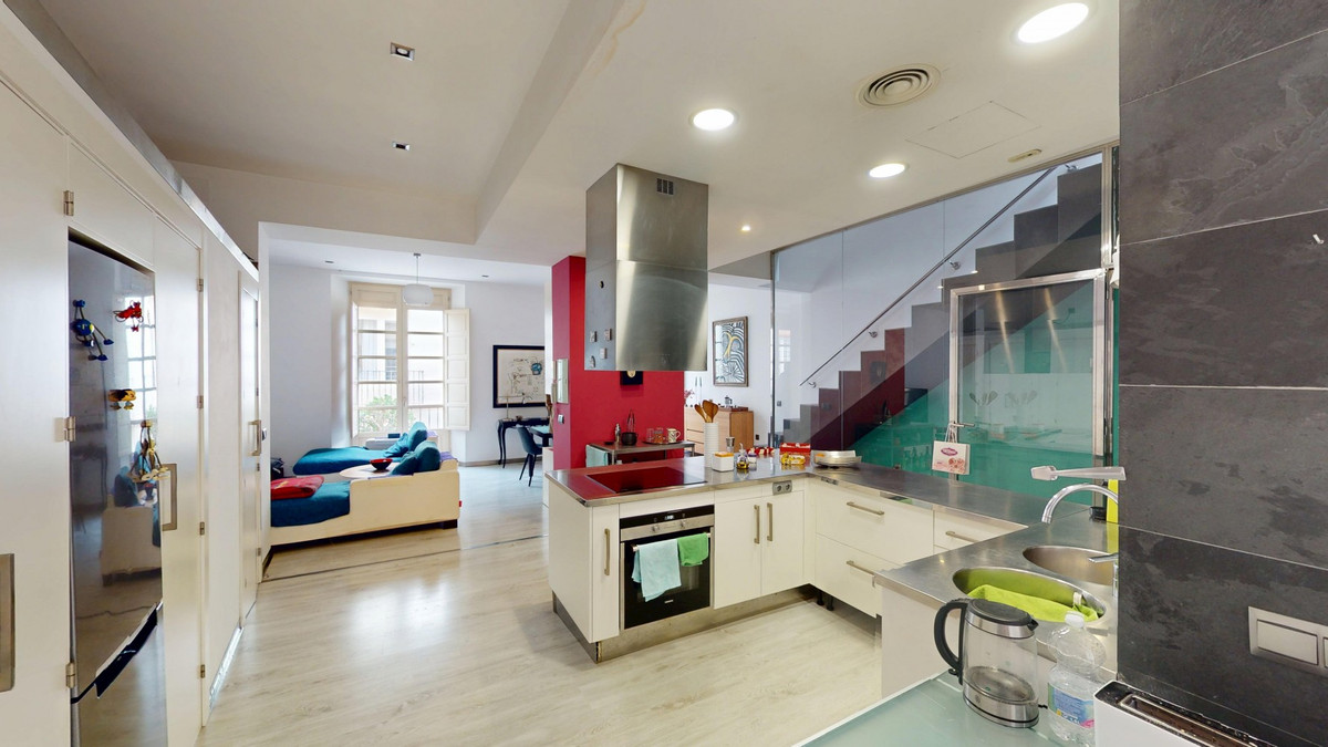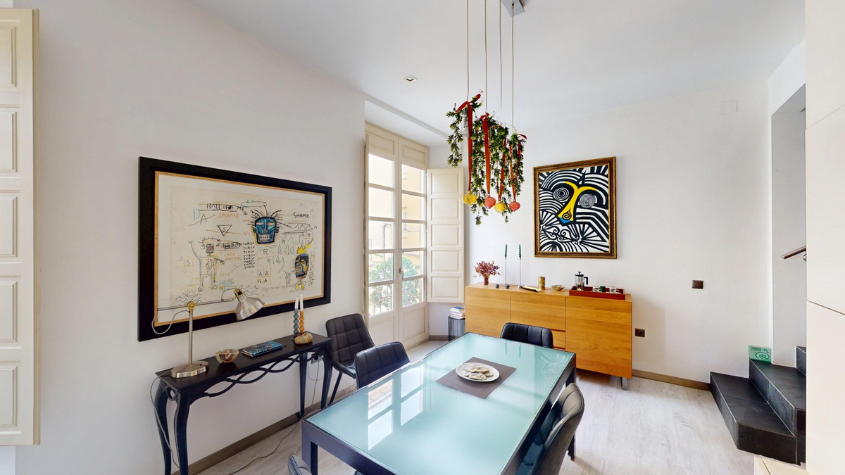 Au cœur même de Malaga, à deux pas de l'emblématique Plaza de la Merced, cette exceptionnelle maison de ville de quatre étages avec solarium offre 330 m² de surface habitable et une polyvalence extraordinaire dans l'un des quartiers les plus prisés de la ville. Le rez-de-chaussée est actuellement aménagé en espace de type bureau, mais son véritable atout réside dans sa flexibilité. Il peut facilement se transformer en un vaste séjour, un bureau privé, une salle de sport, un garage, ou combiner ces usages, s'adaptant ainsi parfaitement aux besoins d'un mode de vie résidentiel ou mixte. Le premier étage constitue le cœur de la maison, avec une cuisine de style industriel qui s'ouvre harmonieusement sur le séjour et la salle à manger. On y trouve également un espace séparé, actuellement utilisé comme coin détente, avec accès à une petite terrasse, ainsi que des toilettes invités. Le deuxième étage est dédié à la suite parentale, offrant une chambre spacieuse, un grand dressing et une élégante salle de bains privative. De là, on accède directement à une terrasse privée de belle taille, idéale pour profiter du climat de Malaga en toute intimité. Au quatrième étage, une seconde chambre avec salle de bains privative et un grand dressing offre confort et indépendance. Ce niveau offre également la possibilité d'agrandir l'espace grâce à la toiture mansardée, ajoutant ainsi du potentiel à cette demeure déjà impressionnante. Un solarium spectaculaire, offrant une vue imprenable sur la ville et les montagnes, couronne la propriété. Cet espace sur le toit comprend une terrasse couverte avec une cuisine entièrement équipée, idéale pour recevoir, se détendre ou admirer les couchers de soleil sur Malaga. La maison est préparée pour l'installation d'un ascenseur, la gaine étant déjà construite, et dispose de la climatisation dans toutes les pièces, garantissant un confort optimal toute l'année. Une propriété unique alliant espace, cachet et potentiel, idéalement située en plein centre-ville, parfaite comme résidence privée de prestige ou investissement locatif de grande valeur au cœur de Malaga. Nous serons ravis de vous présenter prochainement cette propriété de rêve, en personne ou par visite virtuelle. Car ce monde est unique, à l'image de notre Axarquía. En Andalousie. Sur la Costa del Sol. Ici, sous le soleil…