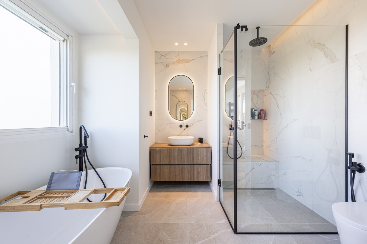 Salle de bains attenante avec vue sur la mer