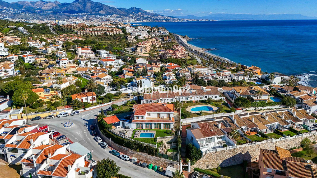 Villa individuelle située à El Faro de Mijas, offrant une vue imprenable sur la mer Méditerranée et le phare, au sein d'un quartier résidentiel calme et en hauteur.