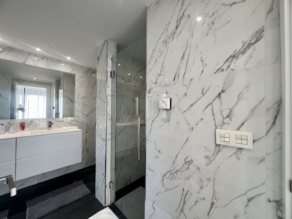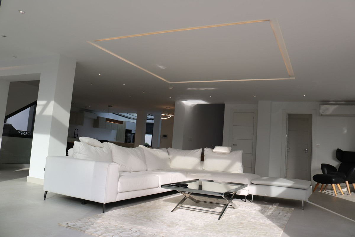 Une superbe villa moderne, à proximité immédiate des commodités, de parcours de golf primés et de magnifiques plages, se situe dans un domaine privé et sécurisé sur les hauteurs de Nueva Andalucía. Elle offre une vue imprenable sur la vallée du golf, la mer Méditerranée et Gibraltar.