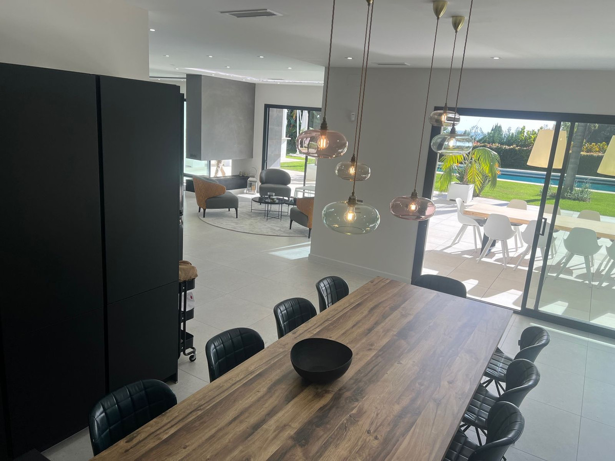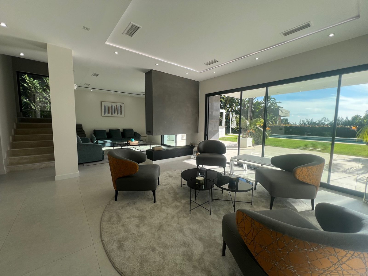 Cette villa située dans le quartier huppé de Marbella, à Malaga, est l'une des plus modernes du secteur. Construite en 2023, elle comprend six chambres, quatre salles de bain complètes et un WC. Entièrement meublée et prête à habiter, elle dispose d'un garage pour trois voitures, d'une salle de jeux avec chambre d'amis, et au premier étage d'un vaste séjour/salle à manger donnant sur la piscine et le jardin. La cuisine est entièrement équipée avec des appareils haut de gamme. Un ascenseur intérieur dessert quatre autres chambres avec salles de bain privatives et accès à une terrasse et un solarium exposés plein sud avec vue sur la mer. La villa est équipée d'un système domotique complet, incluant la climatisation, une pompe à chaleur et un chauffage au sol. Située dans une impasse d'une résidence privée et sécurisée 24h/24, elle représente une opportunité unique de vivre dans le quartier le plus exclusif de Marbella. Prenez rendez-vous pour une visite.