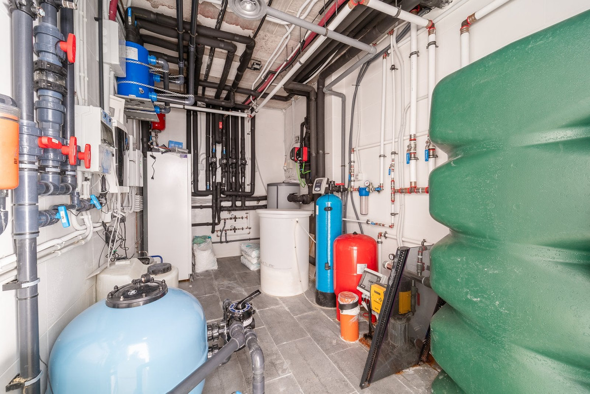 À l'extérieur, la propriété comprend une piscine chauffée utilisable presque toute l'année, ainsi que différents espaces dédiés à la détente et aux moments de convivialité. La terrasse ensoleillée à l'étage supérieur est agrémentée d'une grande pergola, d'une cuisine d'été avec barbecue et d'un espace de loisirs avec mini-golf, offrant un cadre idéal pour les réunions de famille ou les retrouvailles entre amis, dans une ambiance à la fois détendue et pratique.