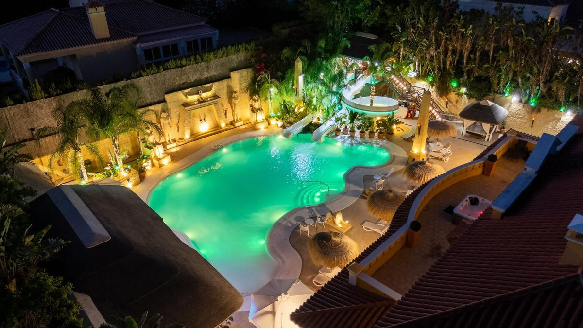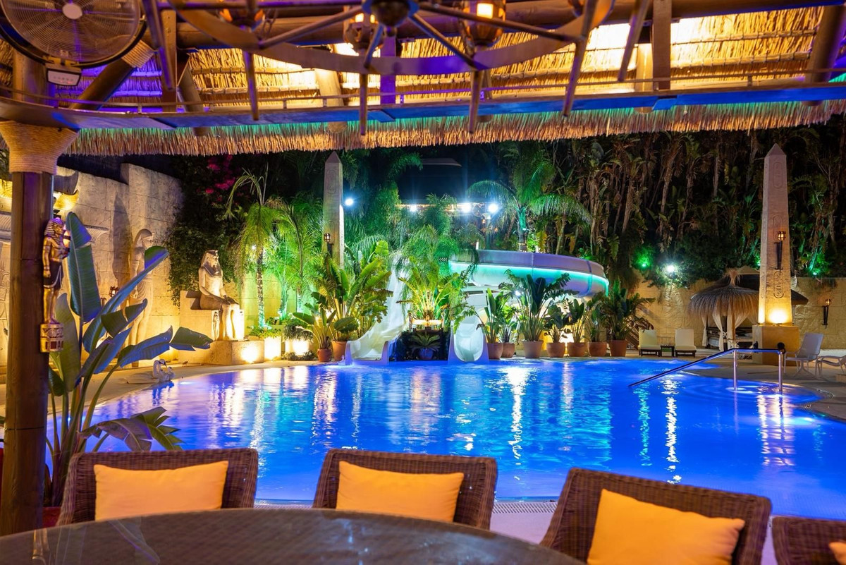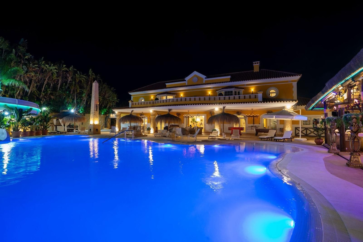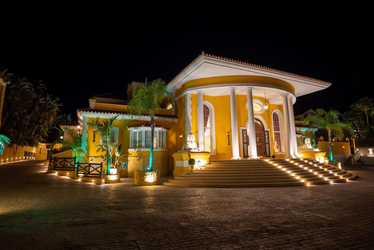 Située dans la zone G de Sotogrande Alto, cette vaste villa de luxe a été construite par son propriétaire actuel sur une période de 10 ans, avec des matériaux haut de gamme et une somptueuse sélection de lustres en cristal. Le grand hall d'entrée est orné de deux escaliers en marbre incurvés menant à l'étage supérieur, où se trouvent trois chambres, dont une suite parentale décorée sur le thème égyptien, avec des murs peints à la main, des moulures raffinées et des piliers en pierre massive. Un salon privé donne sur le jardin et la piscine. On y trouve également un dressing et une salle de bains attenante avec baignoire balnéo et double douche à l'italienne. Deux autres chambres spacieuses, chacune avec sa propre salle de bains, se trouvent à cet étage et donnent accès à la terrasse privée. De là, un escalier mène au solarium privé. Un ascenseur dessert les trois étages. Au rez-de-chaussée se trouvent un grand salon, une salle à manger et des portes donnant sur la terrasse couverte et la piscine. On y trouve également une cuisine de service avec cellier, une buanderie et un cellier. On y trouve également une salle de cinéma entièrement équipée avec huit fauteuils en cuir. Au demi-sous-sol se situe la suite de divertissement, décorée et peinte à la main sur le thème égyptien, avec une décoration assortie. Elle comprend une table de poker, des espaces de détente, un grand bar à cocktails, une salle de sport moderne avec vestiaires et douches, ainsi que deux autres chambres avec salles de bains privatives, également de style égyptien. Au centre du salon se trouve un théâtre miniature inspiré des théâtres du West End londonien, avec deux loges et 37 places. Luxueusement décoré dans un style théâtral, il est fourni avec l'ensemble des décors et accessoires nécessaires à une production de la comédie musicale « Le Fantôme de l'Opéra » et offre un système son et lumière complet, ainsi que la possibilité de projeter des films grâce au système de projection et une scène pour de petits concerts privés. Les travaux sur la villa et le terrain ne sont pas encore terminés, mais il s'agit d'une propriété unique et personnalisée, qui mérite d'être visitée par l'acheteur à la recherche d'une maison d'exception.
