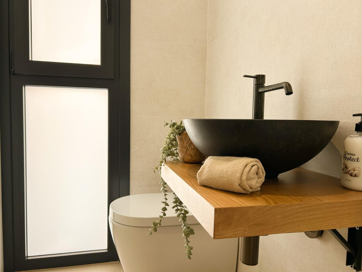 Main floor: Features a spacious, bright living room with a fully equipped open-plan kitchen, designed for both functionality and modern aesthetics. The living area opens directly onto a generous terrace with a private garden and swimming pool, ideal for enjoying the Mediterranean lifestyle. This level also includes a stylish guest toilet and the main bedroom with an en-suite bathroom, allowing for convenient single-level living if desired.