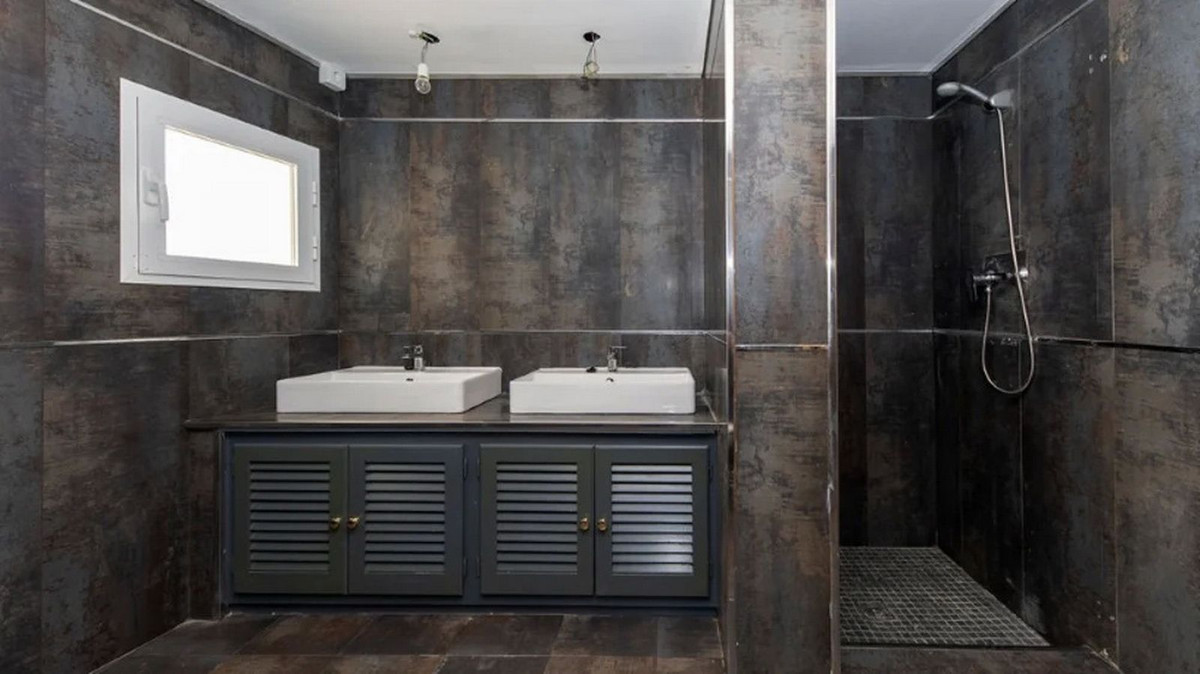 Detached house in the El Almendro Urbanization, Benahavís. It has a surface area of 919 m² distributed over 4 floors. The ground floor comprises a spacious living room, dining room, kitchen, access walkway to the hallway, 2 bedrooms with en-suite bathrooms, and 2 terraces. The upper floor, accessed from the street via the entrance porch, consists of an entrance hall, corridor, 1 bedroom with dressing room, 1 bathroom, and a terrace. The semi-basement level features a spacious garage with room for several vehicles, a games room, and two bedrooms with en-suite bathrooms. The basement level includes a bar area, dressing room, games room, and bathroom. The property sits on a 3,868 m² plot, which includes an entrance porch, parking area, and a large private garden with a swimming pool and jacuzzi, all with sea views. It comes equipped with built-in wardrobes, a fitted kitchen, a fireplace, and pre-installation for air conditioning. Located in a quiet residential area surrounded by several golf courses.
