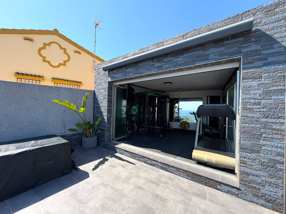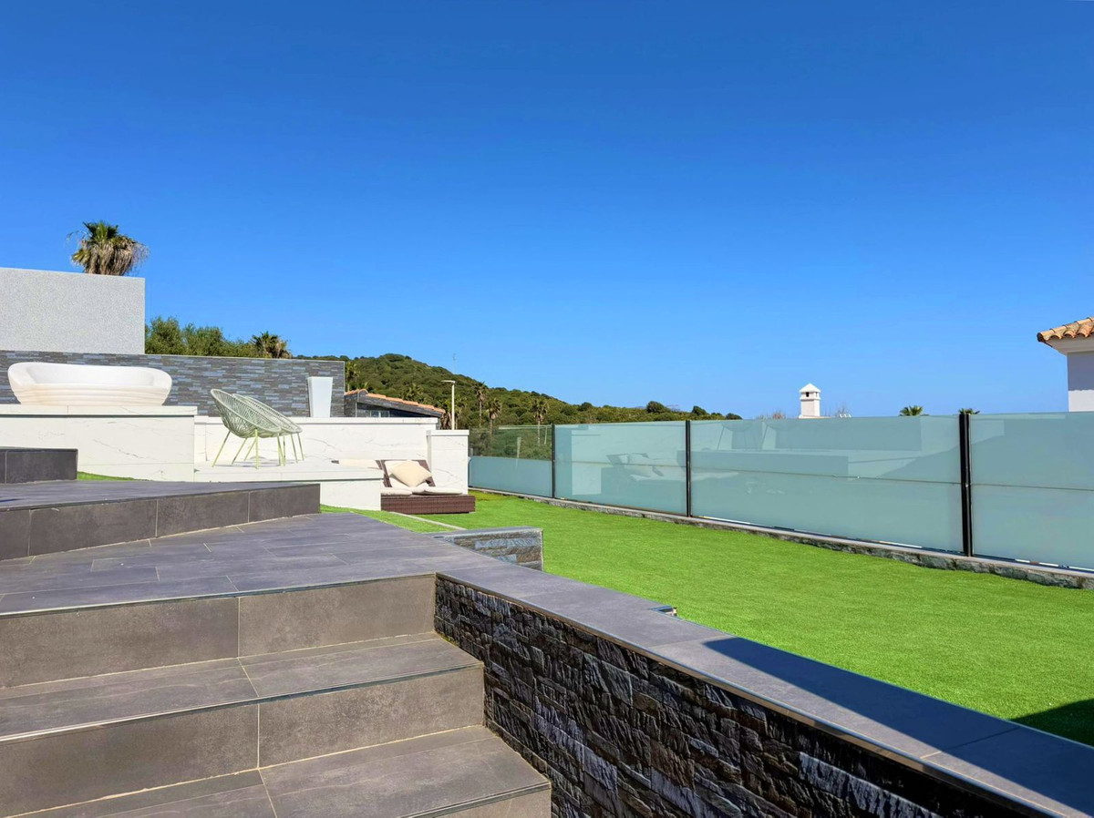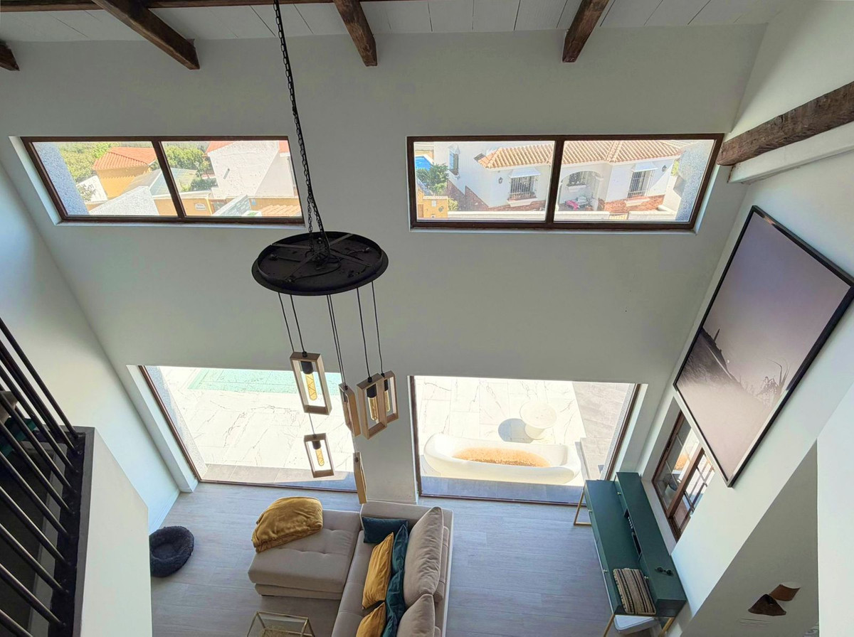 This spectacular fully renovated villa is located in the peaceful El Faro de Punta Carnero residential area, surrounded by the Los Alcornocales Natural Park and just a few meters from the sea. It’s the perfect place to enjoy nature without giving up the convenience of being close to the city. The property is laid out over two floors and stands out for its abundant natural light, thanks to large windows that fill every space with sunshine. On the main floor, you’ll find the living areas: an entrance hall leading to a spacious living-dining room with access to a terrace offering stunning views, a fully equipped kitchen with an integrated dining area, a guest toilet, and a dressing room with access to a rear patio. The upper floor houses two bedrooms and an en-suite bathroom with a whirlpool bathtub and shower. There is also an open space currently used as an office, which could easily be converted into a third bedroom. Outside, the villa features an infinity pool with an integrated jacuzzi, surrounded by a large relaxation area, and a gym with a full bathroom and shower. The enclosed garage with an automatic door has space for two vehicles. Its location allows you to enjoy nature and outdoor activities such as hiking and cycling, as well as water sports like paddleboarding or kayaking, with easy access to both the Costa del Sol and the Costa de la Luz—all just a few minutes from Algeciras.