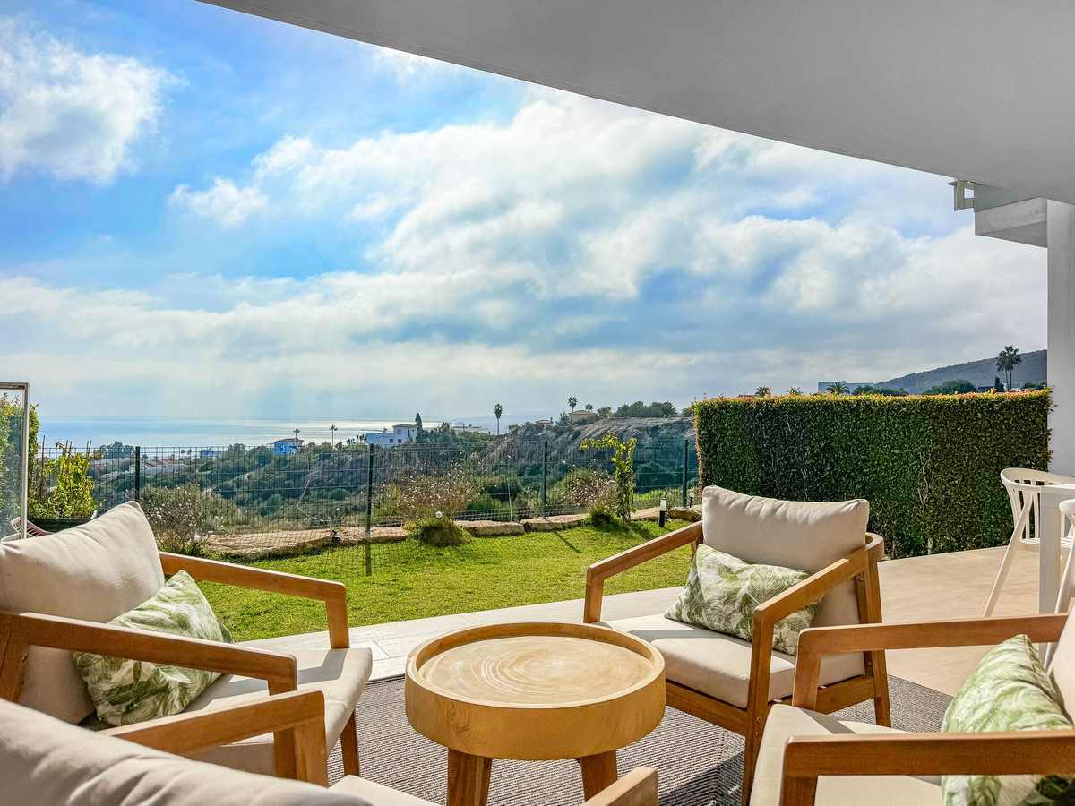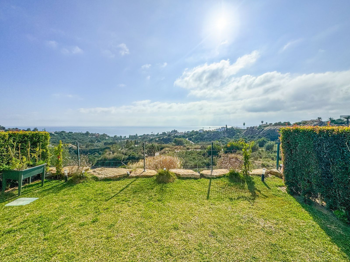 La terrasse, qui communique avec le séjour, est l'endroit idéal pour profiter du calme et de la nature. Elle comprend un coin repas extérieur et un espace détente pour se relaxer tout en admirant le coucher de soleil sur la Costa del Sol. Le jardin privé, entouré d'une végétation luxuriante, offre un espace extérieur parfait pour les loisirs.