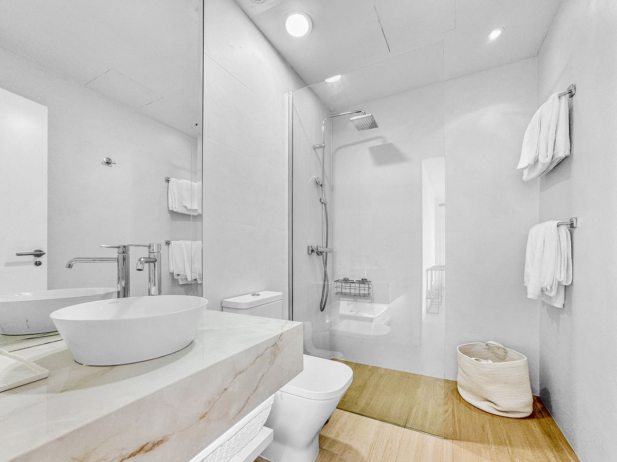 Cet appartement arbore un design minimaliste et moderne, aux tons doux et aux matériaux haut de gamme. Dès l'entrée, un couloir avec miroir et dressing dissimulé mène à un vaste séjour/salle à manger de 40 m², ouvert sur une cuisine Balay entièrement équipée. La vue est tout simplement époustouflante depuis chaque pièce, grâce notamment à deux baies vitrées à triple vitrage (d'une valeur de 10 000 € chacune) qui permettent d'admirer la beauté des environs.
