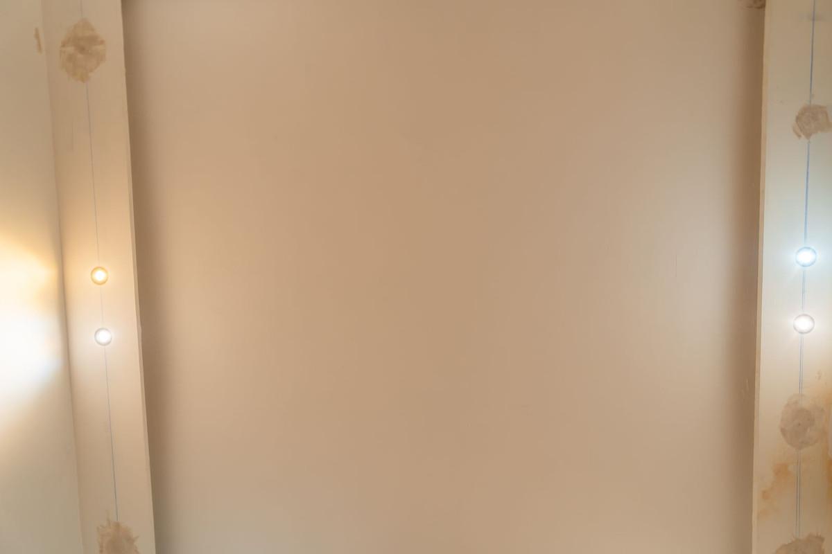 Pièce supplémentaire de 33 m² avec salle de bains attenante, haut plafond et petite fenêtre assurant ventilation et lumière naturelle.