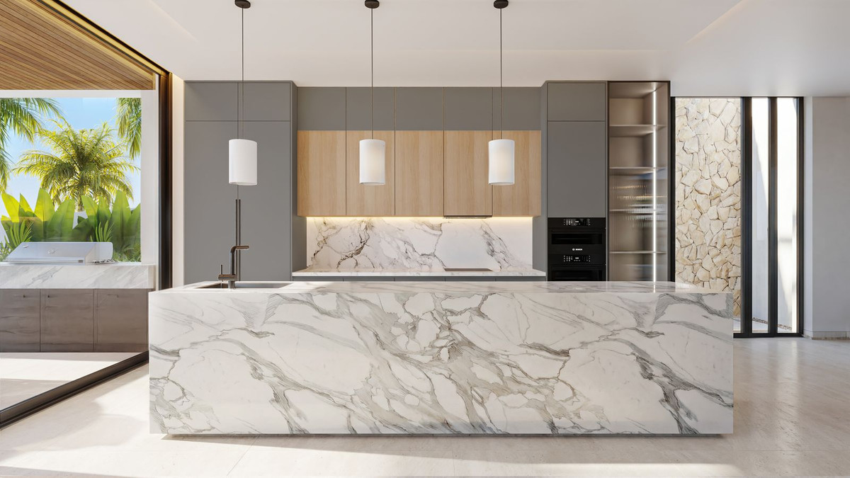 La propriété comprendra une vaste cuisine ouverte sur la salle à manger et le salon, qui se prolonge harmonieusement sur plus de 100 m² de terrasses couvertes, créant ainsi une parfaite harmonie entre le confort intérieur et la vie en plein air. De larges ouvertures et une conception architecturale soignée optimisent la lumière naturelle et créent un lien fort avec les espaces extérieurs environnants.