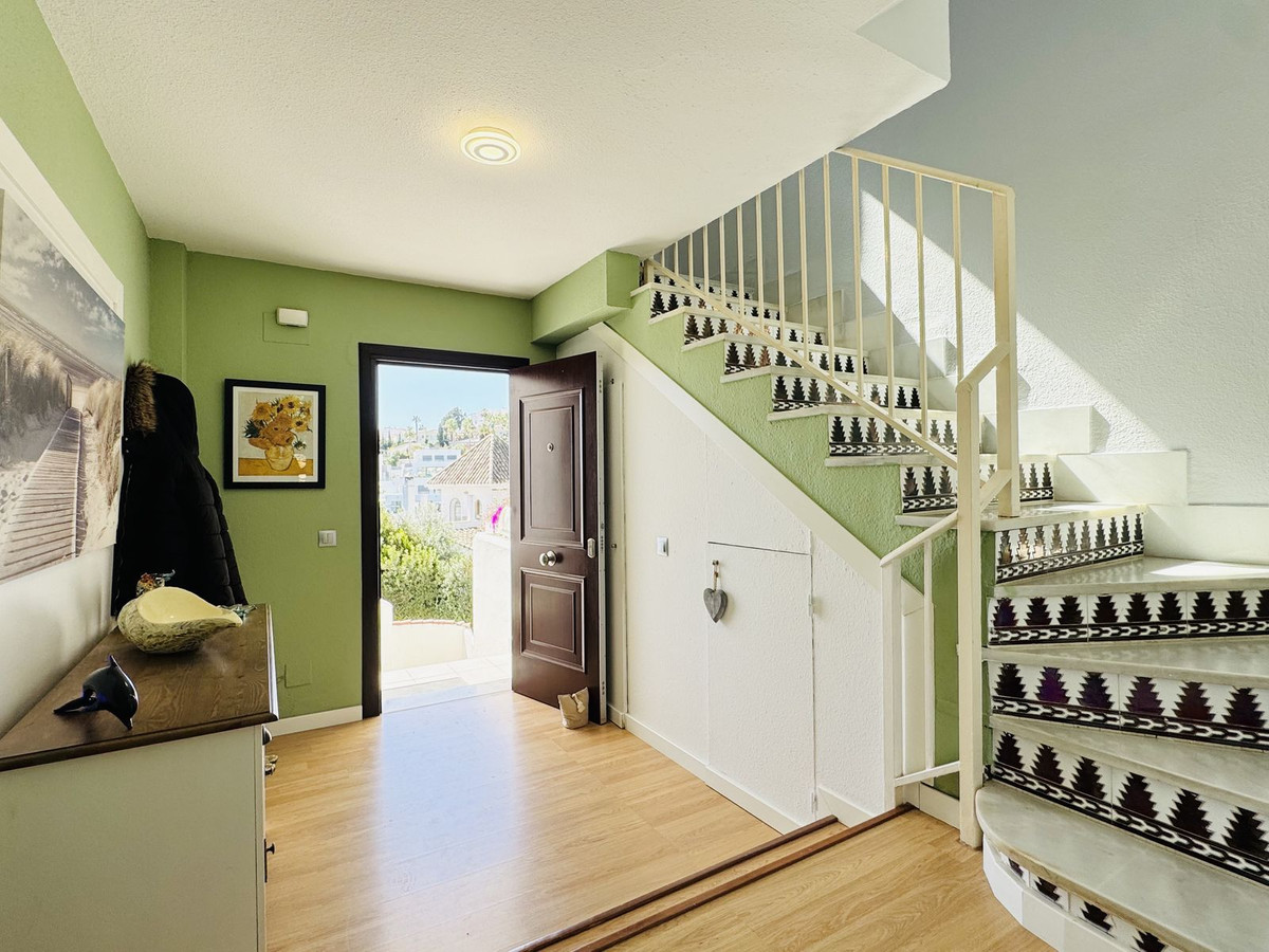 Cette spacieuse maison de ville orientée plein sud est située dans le quartier très prisé de Jardines Del Golf, à quelques pas d'El Castillo et de Marina La Duquesa, alliant confort, style et vues à couper le souffle.