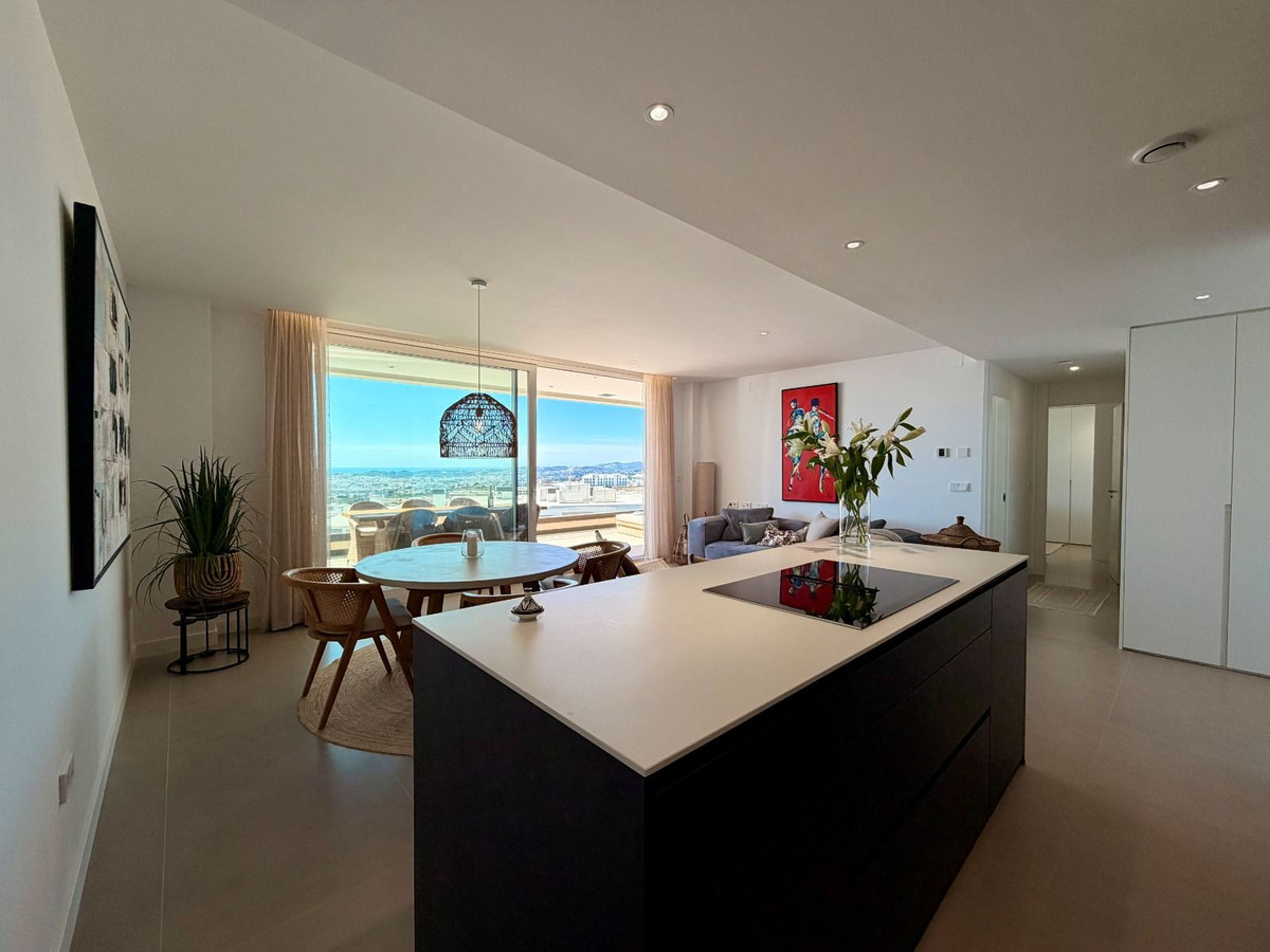 Ce penthouse contemporain offre une vue imprenable et dégagée sur la mer Méditerranée, le port de plaisance de Fuengirola et le littoral, créant un cadre spectaculaire du lever au coucher du soleil.