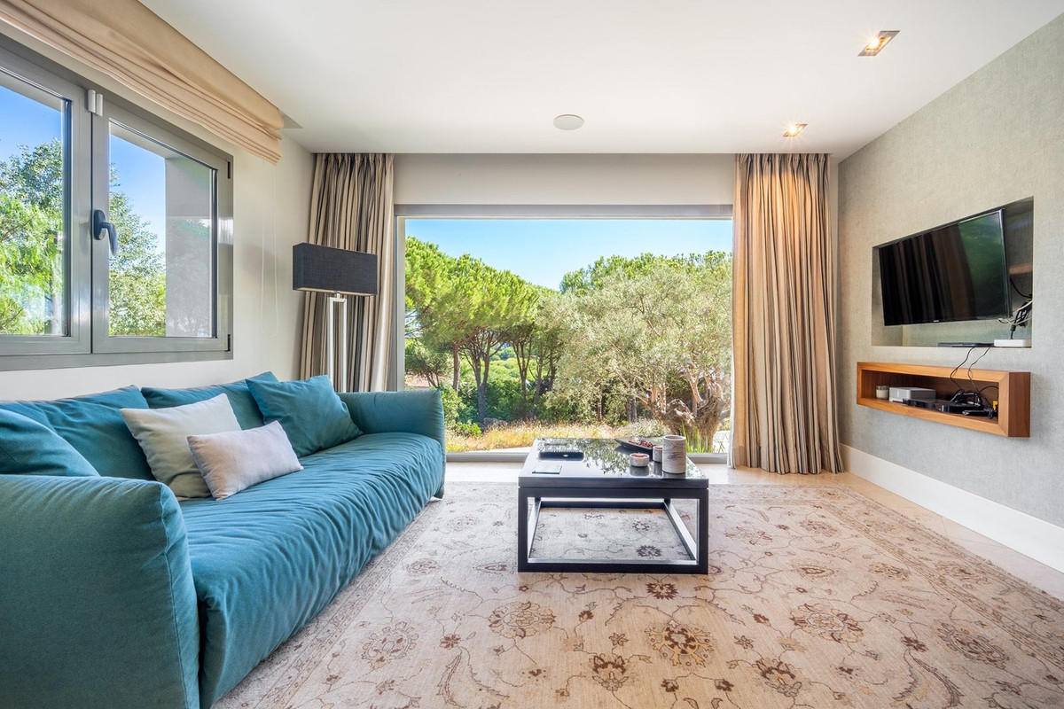 La maison principale, d'une superficie construite de plus de 1 200 m², se déploie sur trois niveaux desservis par un ascenseur. Chaque pièce a été conçue pour offrir confort, luminosité et espaces ouverts, en harmonie avec l'extérieur. Au rez-de-chaussée, un vestibule mène à un salon aux hauts plafonds et aux baies vitrées panoramiques. Attenants se trouvent un bureau, une chambre d'amis, une salle à manger séparée, une salle familiale et une cuisine entièrement équipée. Ces espaces donnent directement sur le jardin et la piscine, permettant de profiter pleinement de la vie dedans-dehors en toute saison. On notera également une terrasse vitrée et une suite d'invités indépendante. L'étage supérieur abrite la suite parentale, avec terrasse privative et vue imprenable sur la Méditerranée, ainsi que trois autres chambres avec salle de bains privative. Au niveau inférieur se trouvent un appartement indépendant et un espace de loisirs complet comprenant une salle de sport, un sauna, une cave à vin, une salle de cinéma et des espaces de rangement.