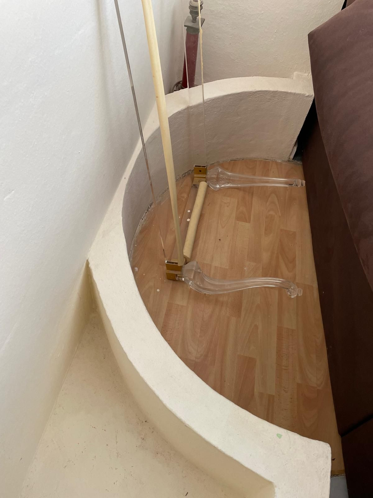 Il est également possible de relier l'appartement supérieur à l'intérieur par un escalier (l'ouverture reste visible dans le salon), ce qui permet de réunir facilement les deux niveaux en un seul logement spacieux si on le souhaite.