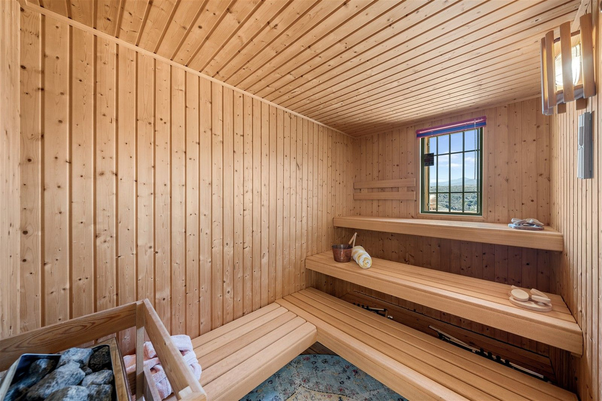 À l'étage, l'impressionnante suite parentale bénéficie d'une terrasse privative, d'un dressing et d'une vaste salle de bains attenante avec douche à l'italienne et baignoire séparée, créant ainsi un havre de paix et de luxe. Une chambre d'amis supplémentaire, actuellement aménagée en bureau, et un sauna privé complètent cet étage. Plusieurs terrasses orientées différemment laissent entrer la lumière naturelle tout au long de la journée et offrent des espaces de vie extérieurs idéaux, que ce soit pour profiter du soleil ou se détendre à l'ombre.