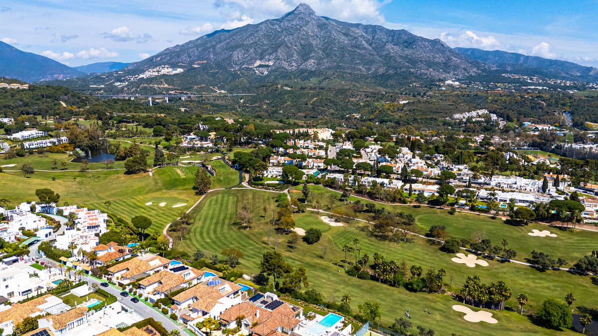 Découvrez une villa andalouse d'exception, idéalement située en première ligne face à l'Aloha Golf Club, offrant une vue panoramique à couper le souffle qui s'étend sur les fairways jusqu'à l'emblématique La Concha.