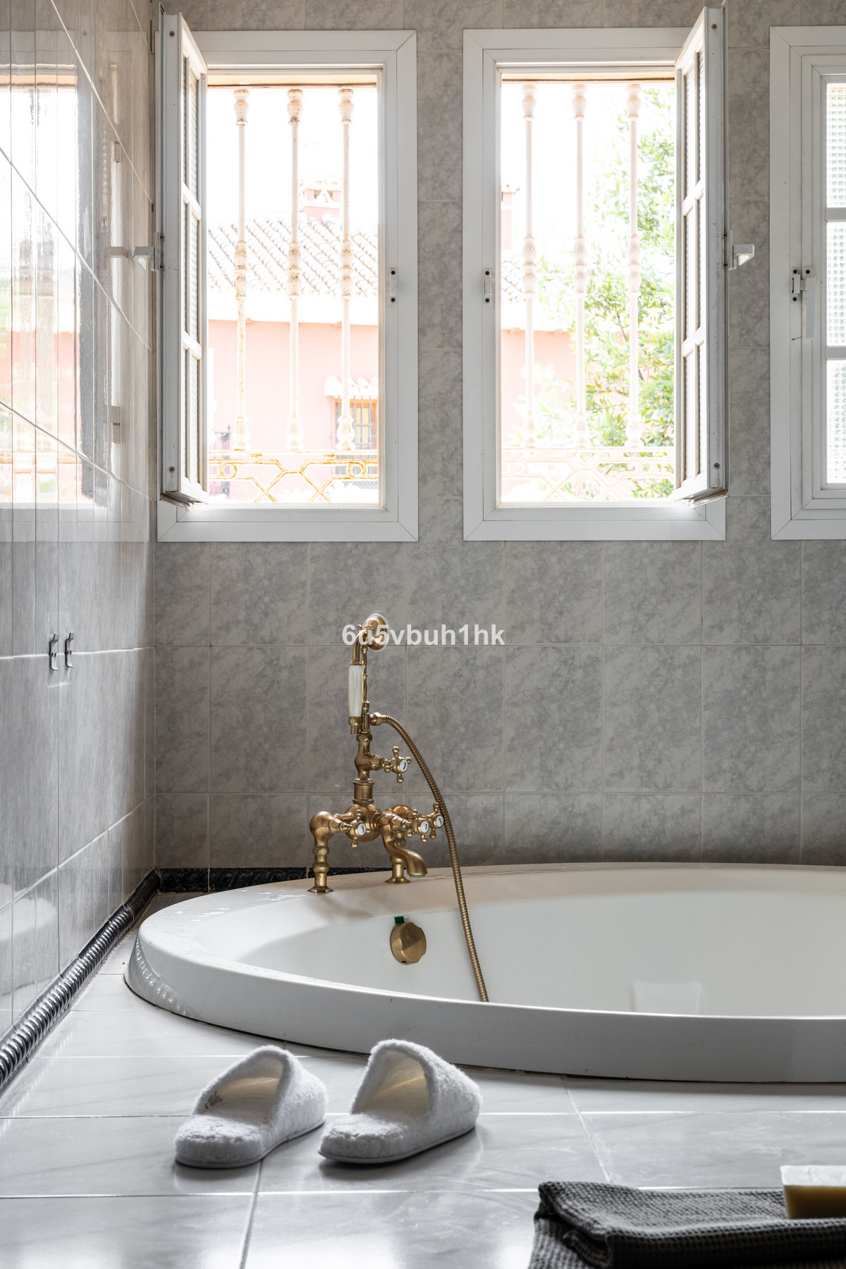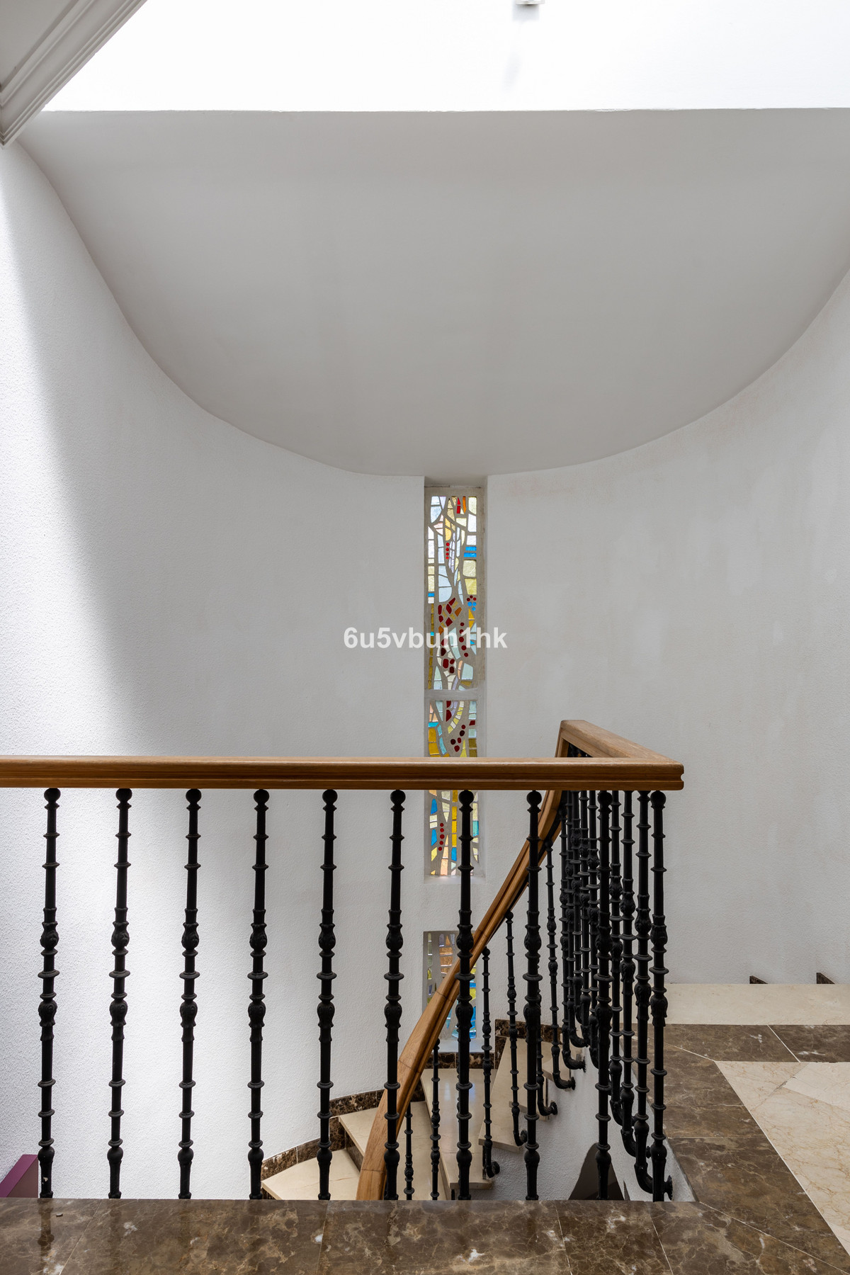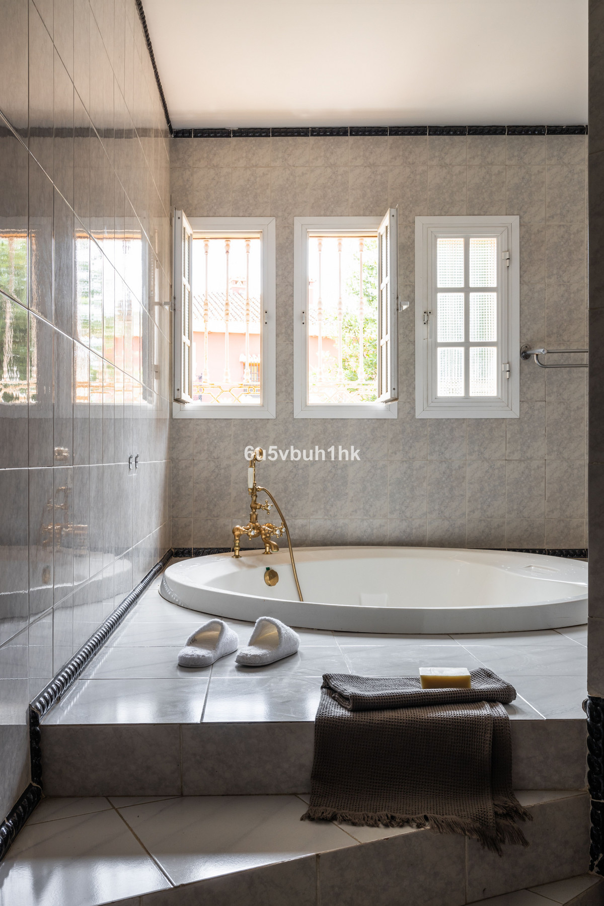 Cette luxueuse villa, dotée d'un magnifique jardin tropical et d'une piscine privée, est à voir absolument. Entièrement modernisée, elle est à vendre à El Coto, Fuengirola. En entrant dans la maison, vous découvrirez un vaste hall d'entrée qui s'ouvre sur un magnifique vestibule où se trouve l'escalier sur la droite. Au premier étage, vous trouverez une grande cuisine indépendante avec buanderie attenante, des toilettes invités, une salle à manger et un spectaculaire salon en L avec cheminée et de grandes baies vitrées donnant sur le jardin et la piscine. Le deuxième étage abrite quatre chambres spacieuses avec terrasses offrant de superbes vues. La suite parentale dispose d'une salle de bains privative avec dressing ; une salle de bains est également partagée. Le jardin comprend un espace barbecue, une terrasse et une pelouse arborée d'arbres fruitiers, ainsi qu'une piscine privée. Cette propriété dispose d'un garage double, d'un appartement indépendant pour les invités et d'une grande cave à vin au sous-sol. Idéale pour un investissement locatif ou une famille, elle se situe à proximité immédiate de toutes les commodités : supermarché, pharmacie, restaurant et commerces. Parfaite pour y vivre à l'année ou pour les vacances, elle offre un excellent potentiel locatif.